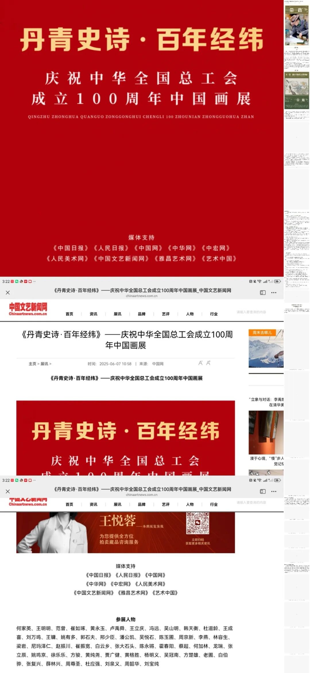 创作与交流遍及海内外,油画、中国画作品亮相知名拍卖机构,《为人民而创作》巡展江浙沪十五站,曾赴多国写生办展,作品登上纽约时代广场大屏并被权威机构收藏;创办自媒体《马上行》,策展首届中国画108将线上展,艺术足迹多元践行创作使命。