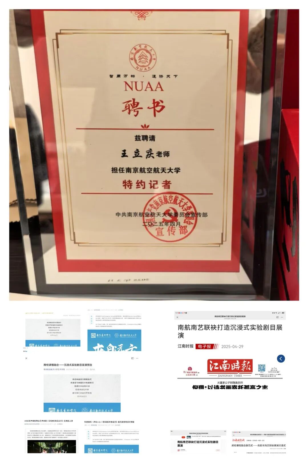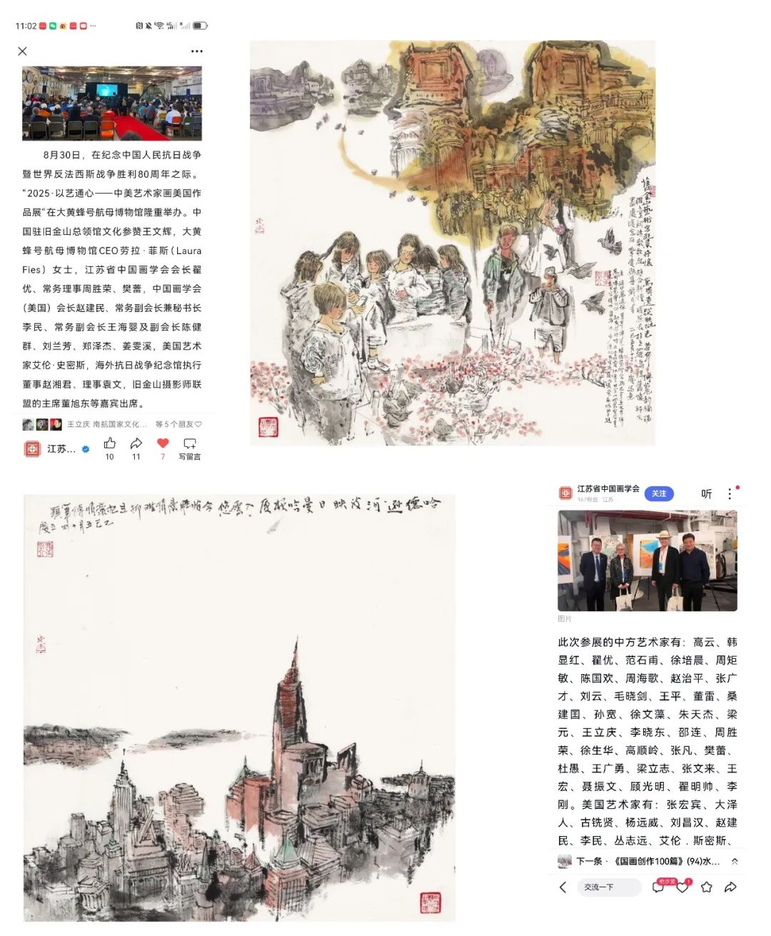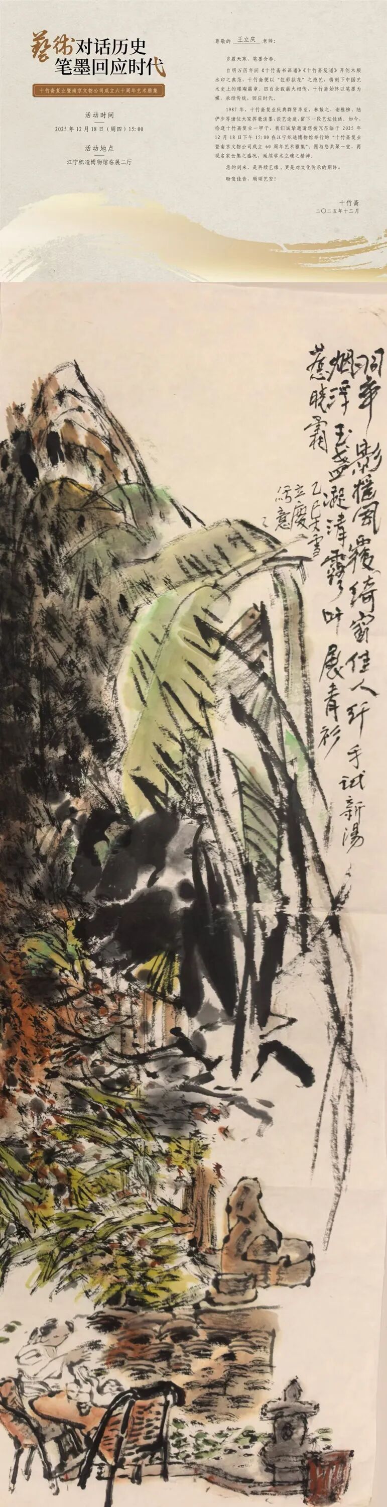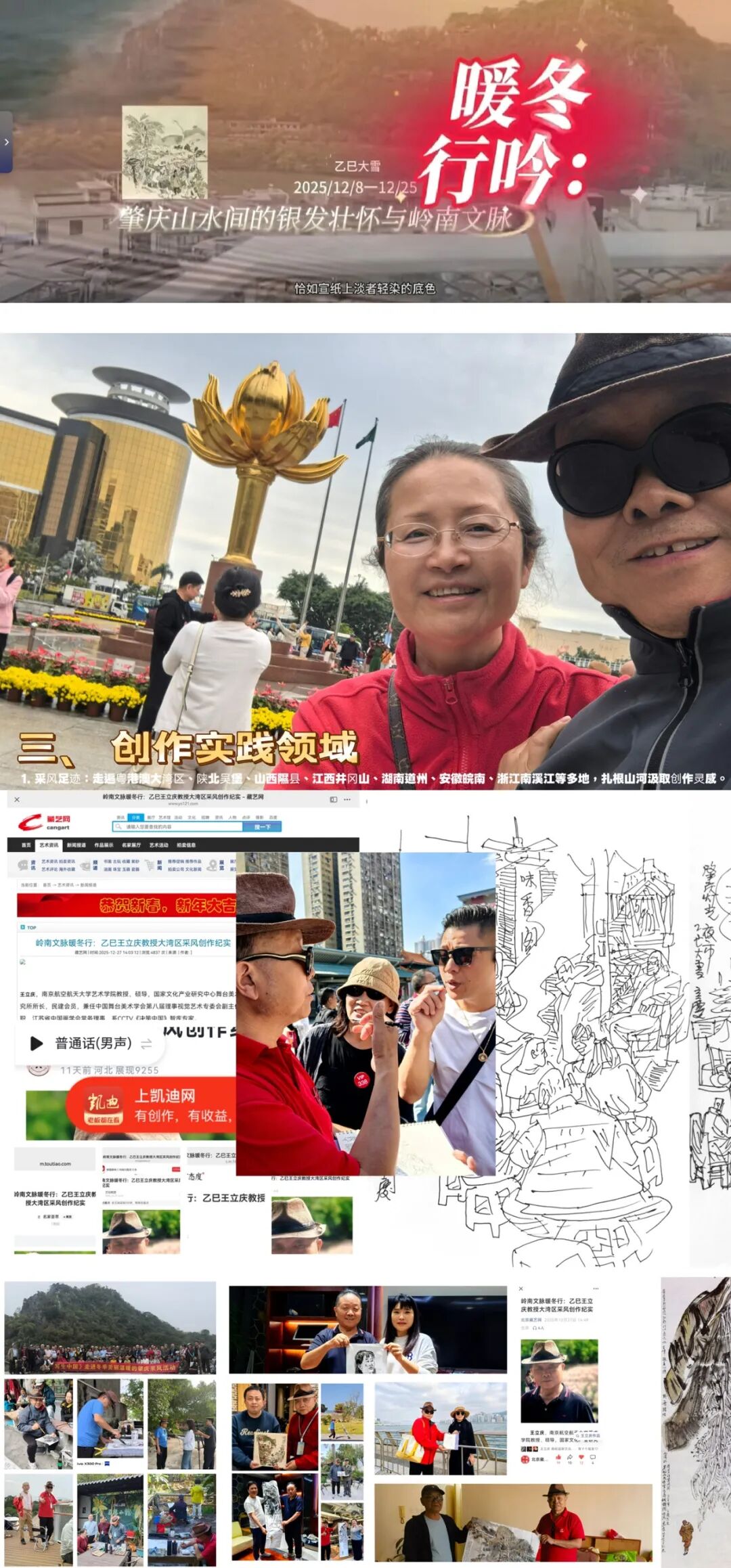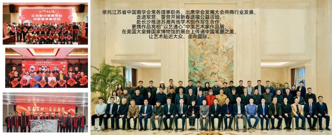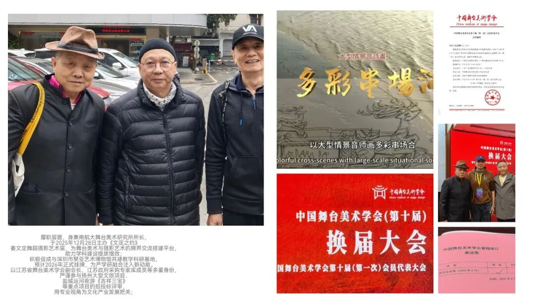 履职层面,身兼南航大舞台美术研究所所长,于2025年12月28日主办《文定之约》姜文定舞蹈摄影艺术展,为舞台美术与摄影艺术的跨界交流搭建平台,助力学科建设提质增效;积极促成与深圳市樊亚艺术博物馆共建教学科研基地,预计2026年正式挂牌,为产学研融合注入新动能。以江苏省舞台美术学会副会长、江苏政府采购专家库成员等多重身份,严谨参与扬州大型文旅项目、盐城运河夜游《吉祥三宝》等重点项目的招投标评审,用专业视角为文化产业发展把关;依托江苏省中国画学会常务理事职务,出席学会发展大会共商行业发展,走进军营、警营开展新春送福公益活动,赴长沙推进苏湘两地学术创作写生合作,更携作品亮相“以艺通心”中美艺术家作品展,在美国大皇蜂国家博物馆的展台上传递中国笔墨之美,让艺术贴近大众、走向国际。