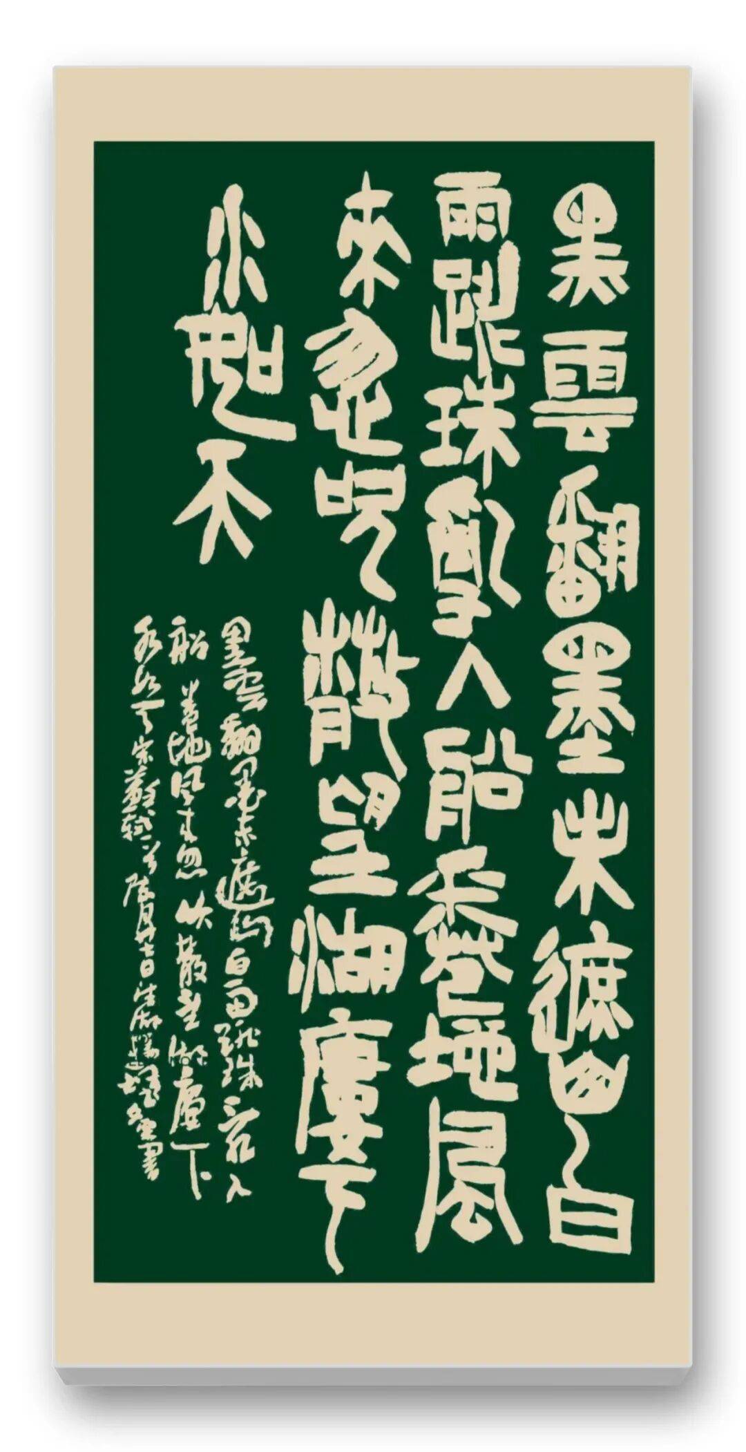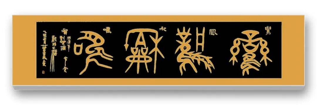 在书体的涉猎上,曹俊海先生堪称“诸书皆成,博涉多优”,尤以行草的洒脱自如与篆书的庄重典雅称闻书坛。其行草作品,笔走蛟龙,直画如剑,曲笔似藤,点若危峰坠石,撇如兰叶拂风,纵横捭阖间开辟新径,酣畅淋漓中书写人生。整幅作品神采飞扬,笔锋游动,擒纵驰张,无一处含糊懈怠,法度尽在指腕之间。更难得的是,其行草风格柔中带刚,变化多姿,既有着传统功力的深厚积淀,又有着个人性情的自然流露。作品中,粗细、向背、疏密、开合、欹侧、布白等构图原则被灵活运用,使得作品既爽朗痛快,又清新自然,字里行间洋溢着一种蓬勃的生命力。而其篆书创作,同样展现出深厚的艺术造诣。他精研覃思,取法峄山碑,却不局限于碑刻的立骨精神,更融入了笔墨书写的传神魅力,使得其大篆作品既有石鼓文的饱满圆厚,又有秦代铁篆的高贵典雅,呈现出龙脉磅礴的正大气象。笔下字字皆有跃、腾、奔、卧的人格姿态,让篆书摆脱了刻板的摹写,回归到艺术的自由界域,展现出传承与创新相融合的独家创作力。