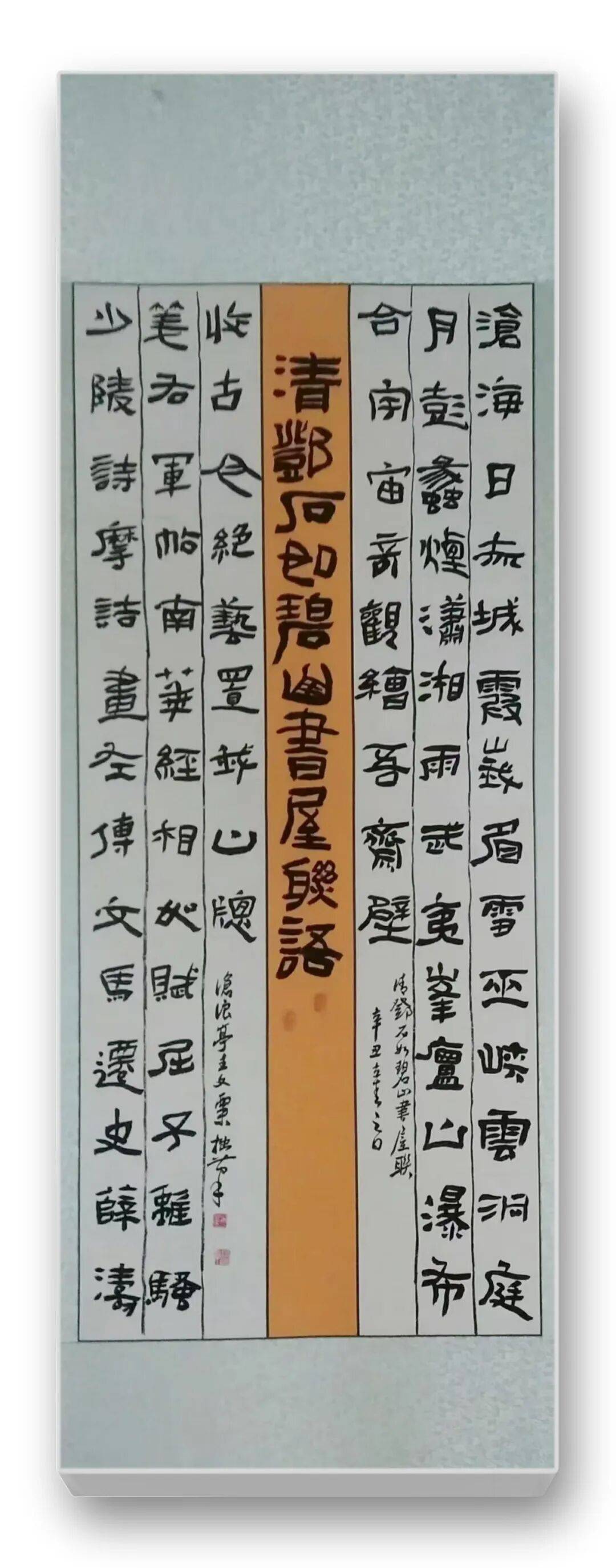 曹俊海先生的书法,不仅有技法的精湛,更有文化的厚度与精神的高度。他始终坚信,书法不仅是一种技能,更是综合文化修养的表现,书法功力的高下,不仅取决于天赋与勤奋,更与书家的气度、学识、思想境界息息相关。因此,在习字之余,他始终着力提升自身的文化素养,将文人书法的笔墨意象融入创作之中,以文化的视角表达书法的人文气息,让侠之勇与儒之雅相依相辅,运化笔墨间,尽显“浊以静而徐清,安以动而徐生”的道法自然之妙。这种文化修养的滋养,使得其作品超越了单纯的视觉美感,承载了更为丰富的精神内涵。观其作品,不仅能感受到笔墨的精妙,更能体会到一种气势、一种包容、一种博大的精神气度,这正是文人书法所追求的“书为心画”的境界。无论是参加“爱国有我之:我为抗战胜利写一幅书法”专项展览,还是创作隶书对联荣获五台山世界和平祈福大法会书画特创奖并被永久收藏,其作品都始终传递着积极向上的精神力量,彰显着深厚的家国情怀与文化担当。