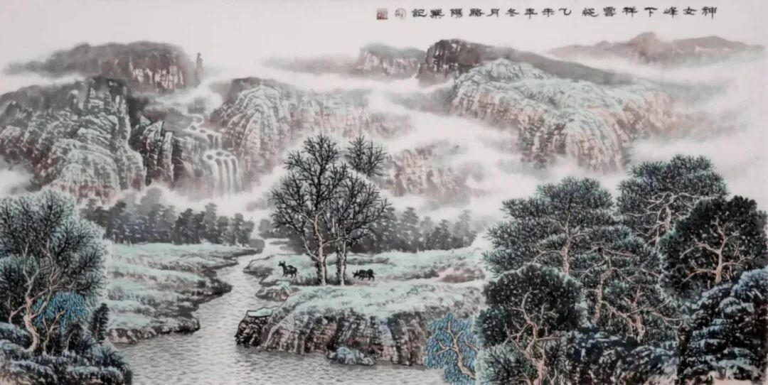 神女峰下祥云绕 国画 138X68cm 骆阳叶