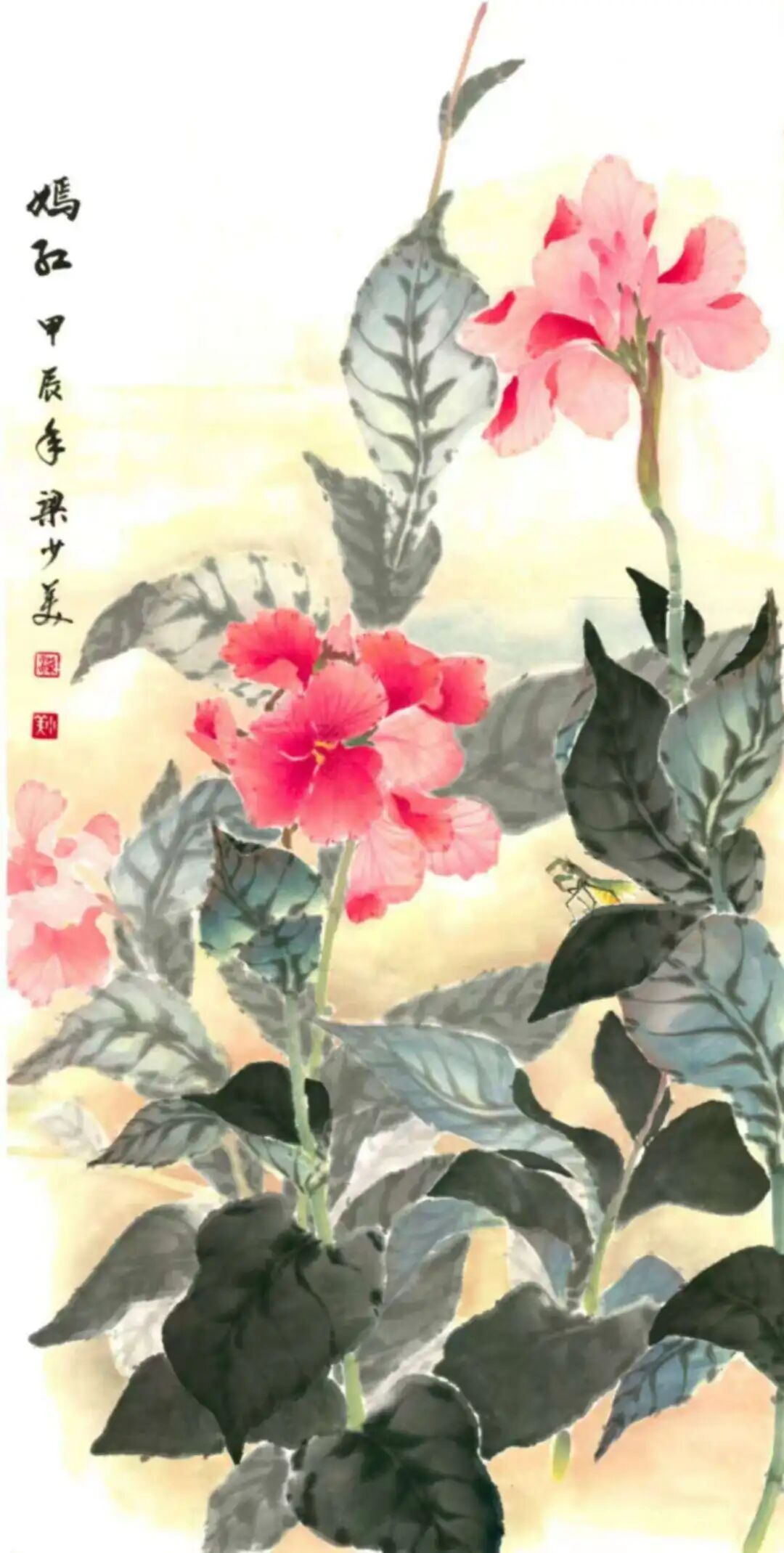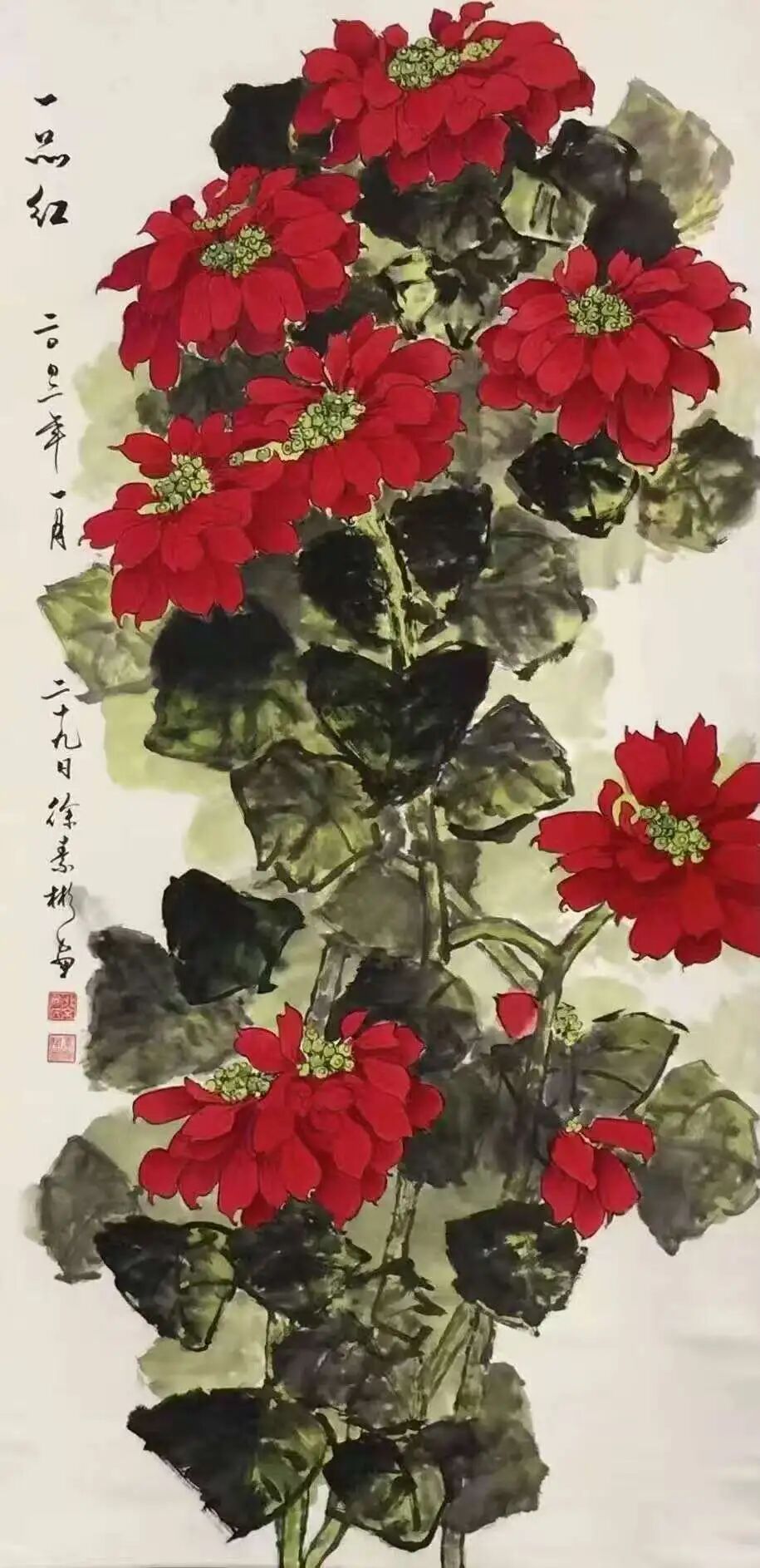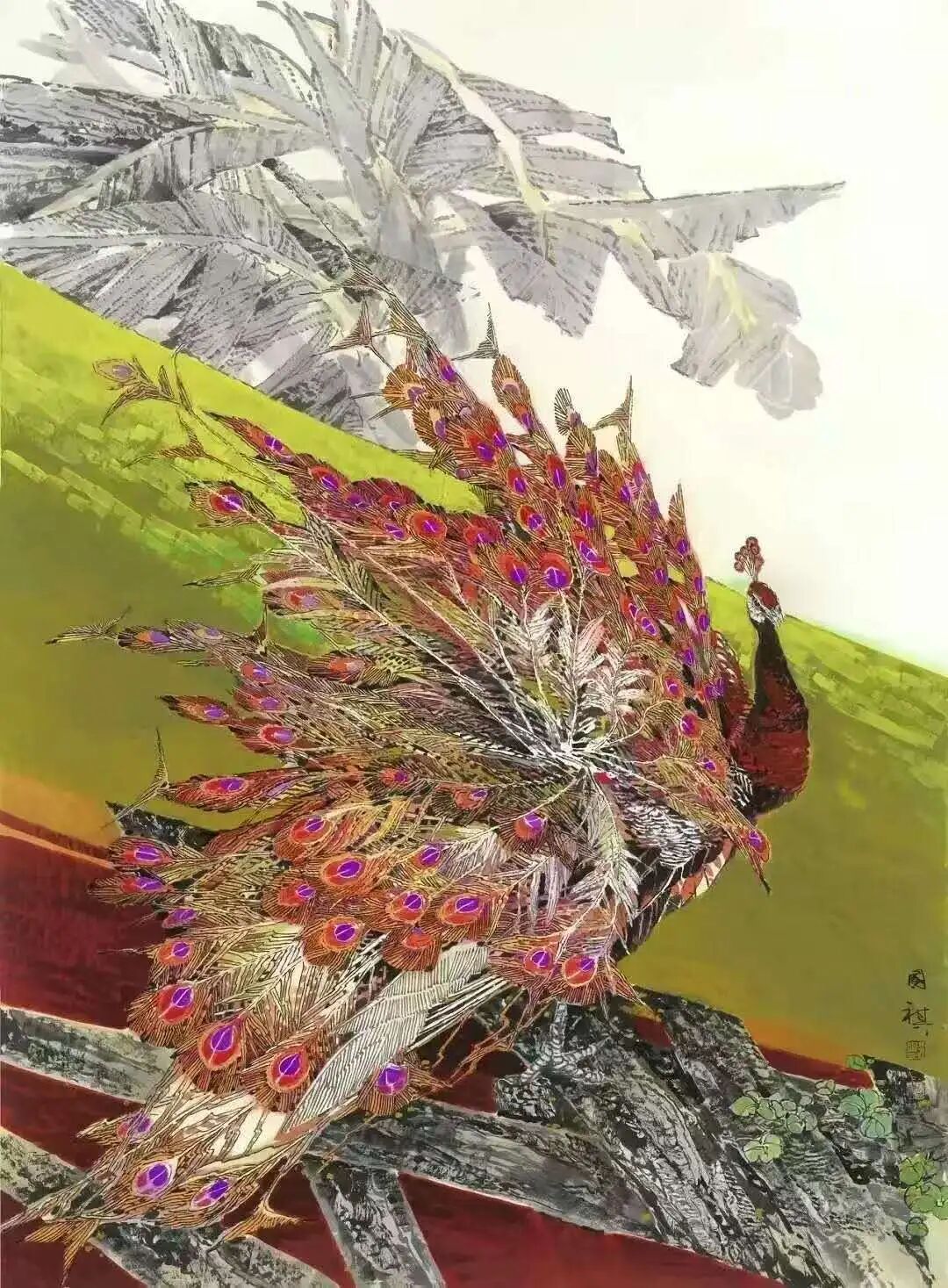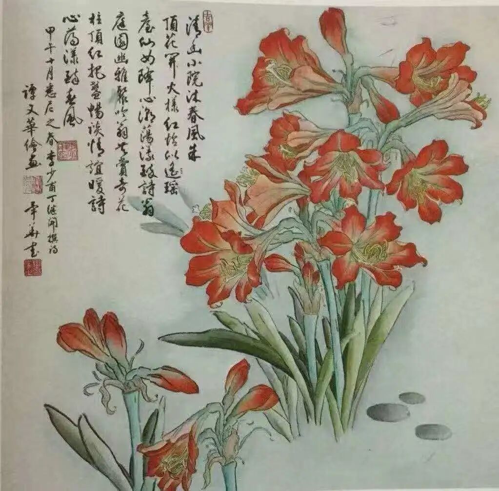 柱顶红花 工笔重彩 66X66cm 谭文华