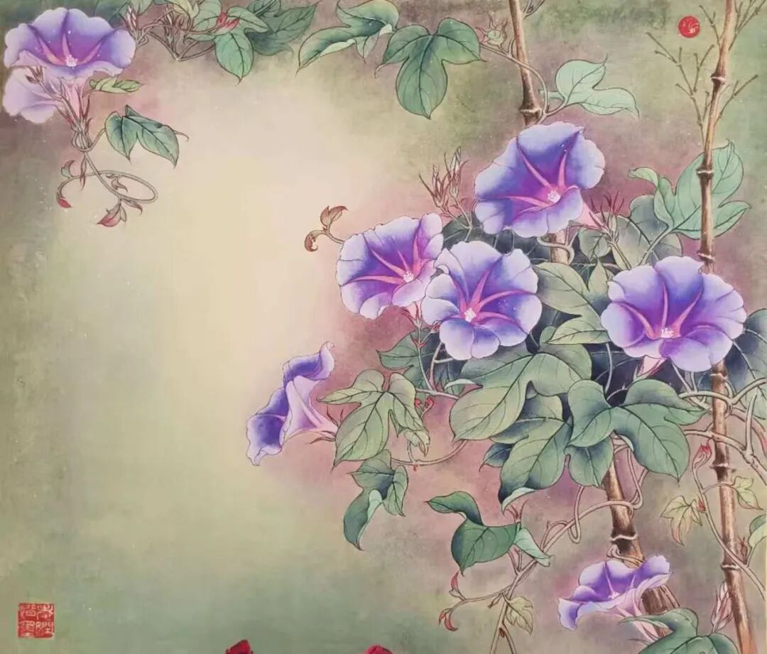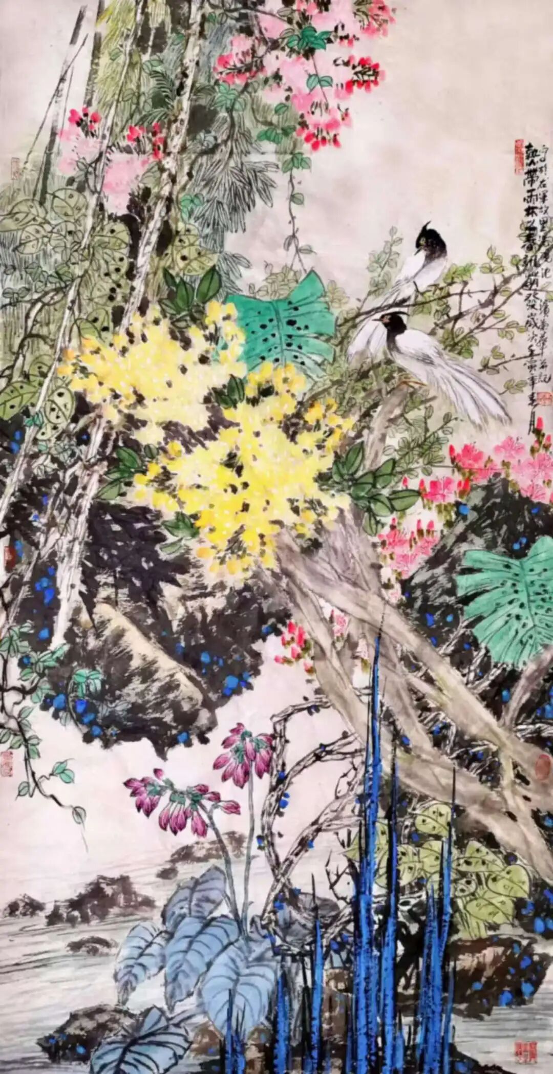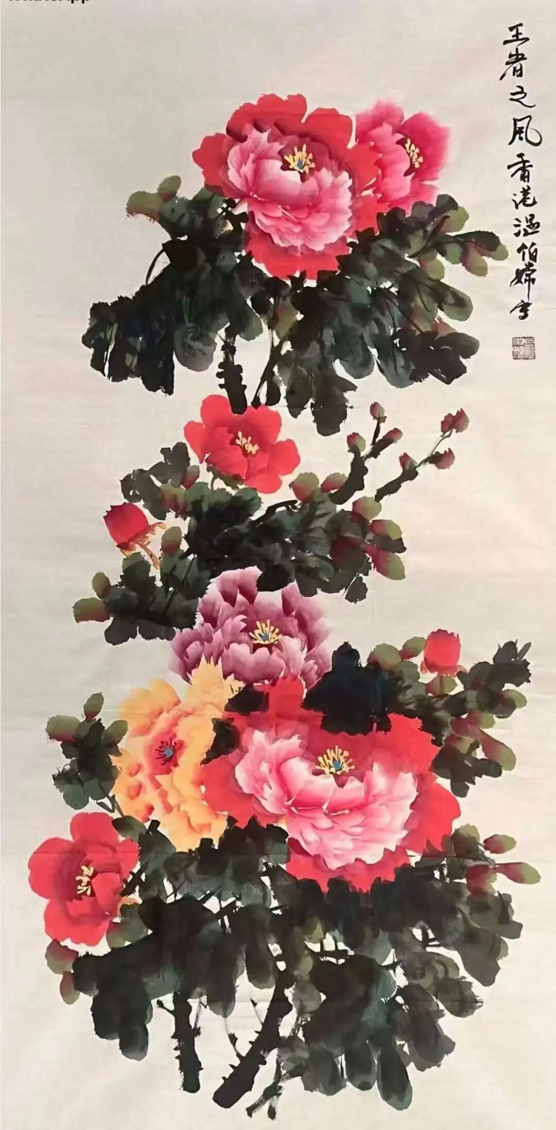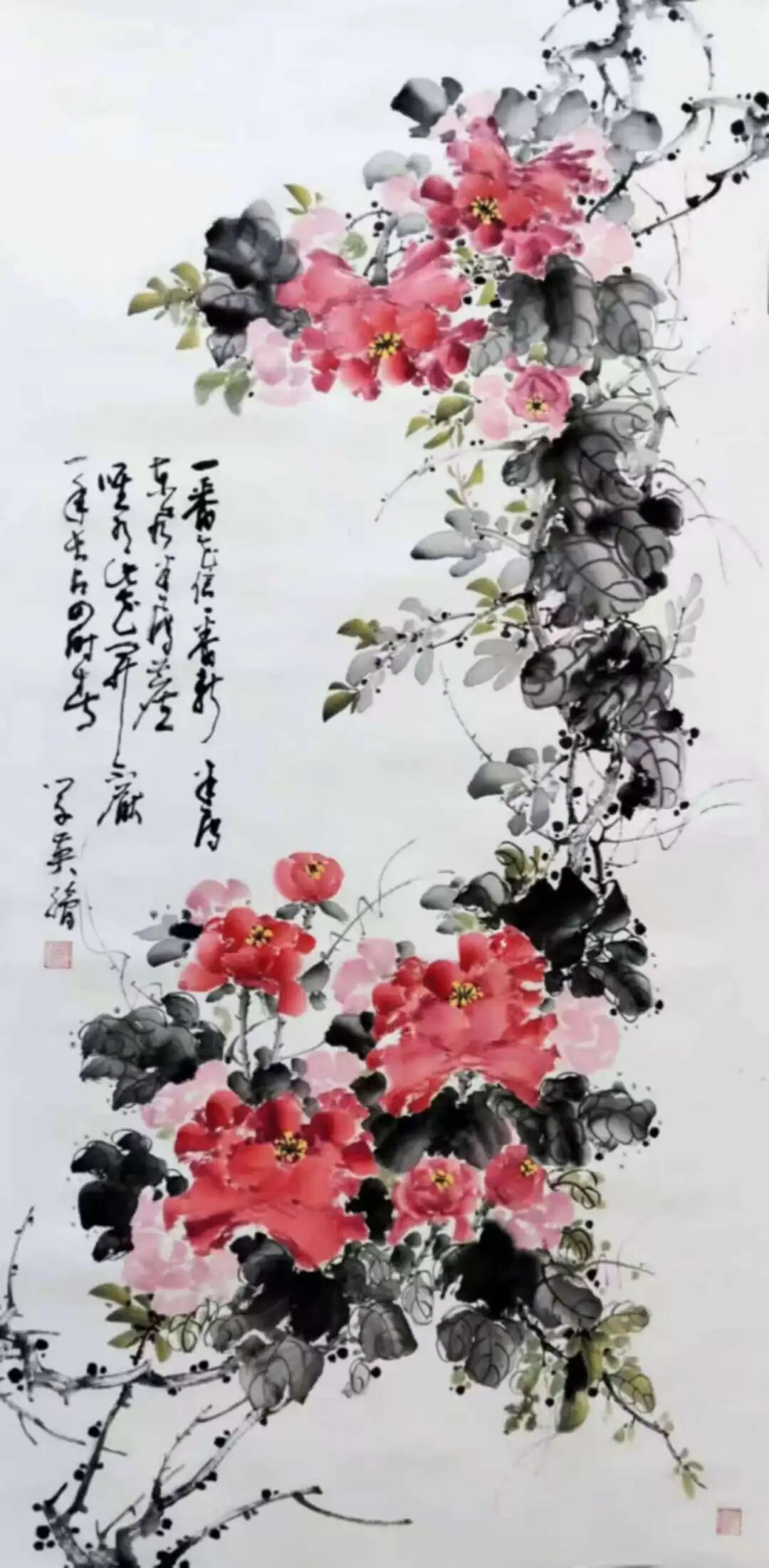 柱顶红花 工笔重彩 66X66cm 谭文华
