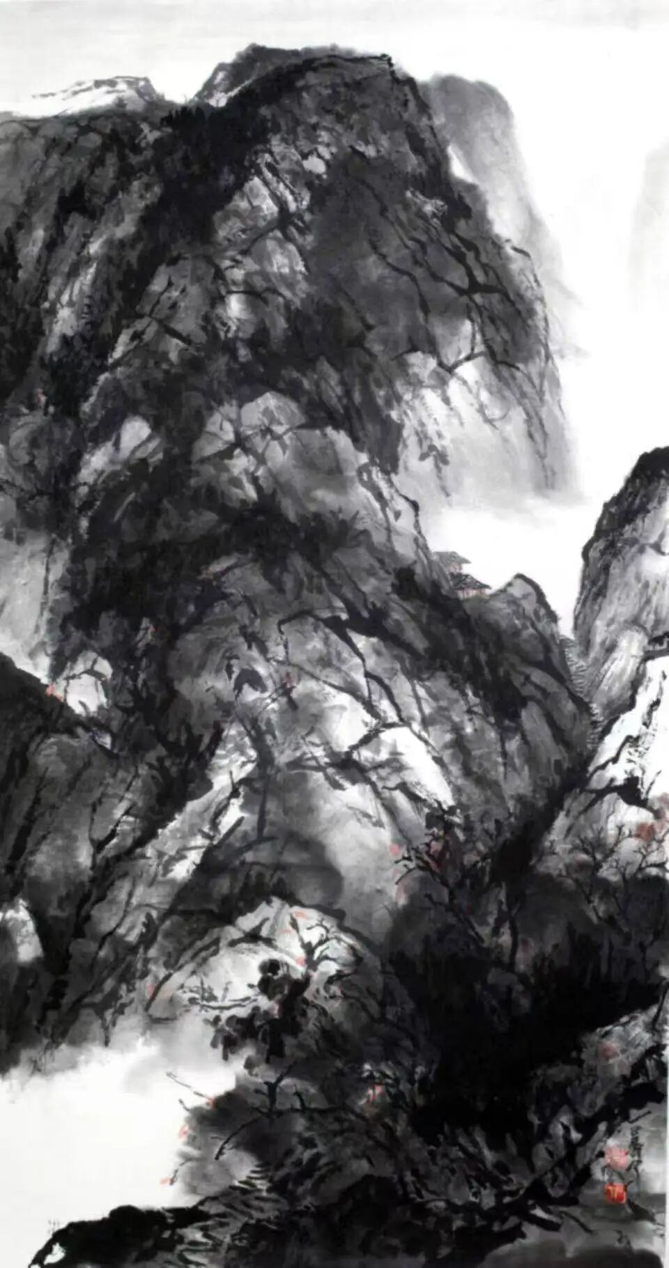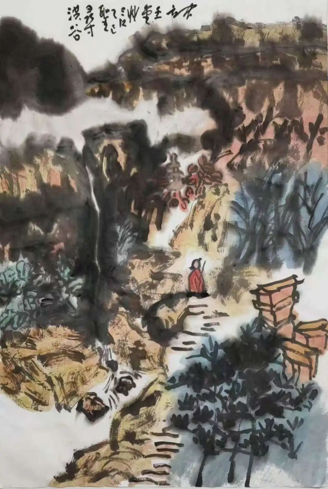 太行山洪谷寻圣 国画 69X45cm 王立民