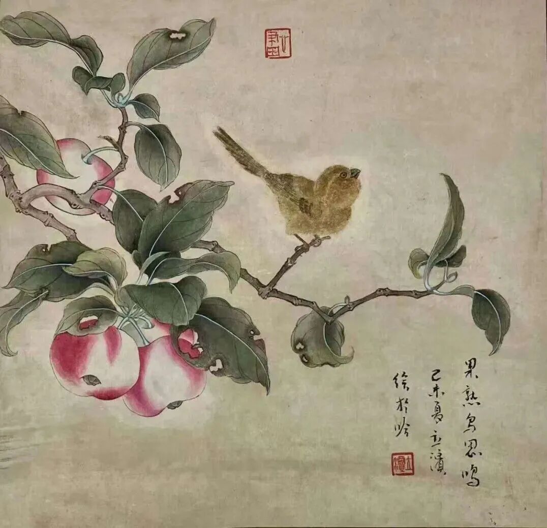 果熟来禽图 工笔国画33X33cm 鞠立滨
