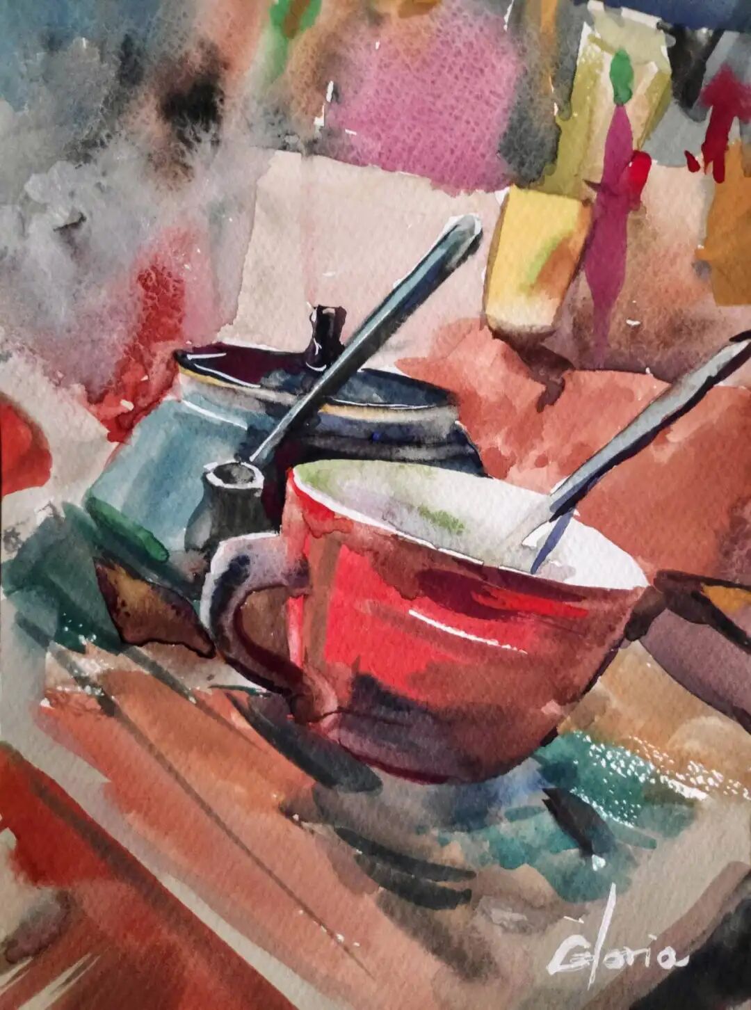 茶韵涵光 水彩画 14.8X21cm 梁艳儀 Gloria Liang