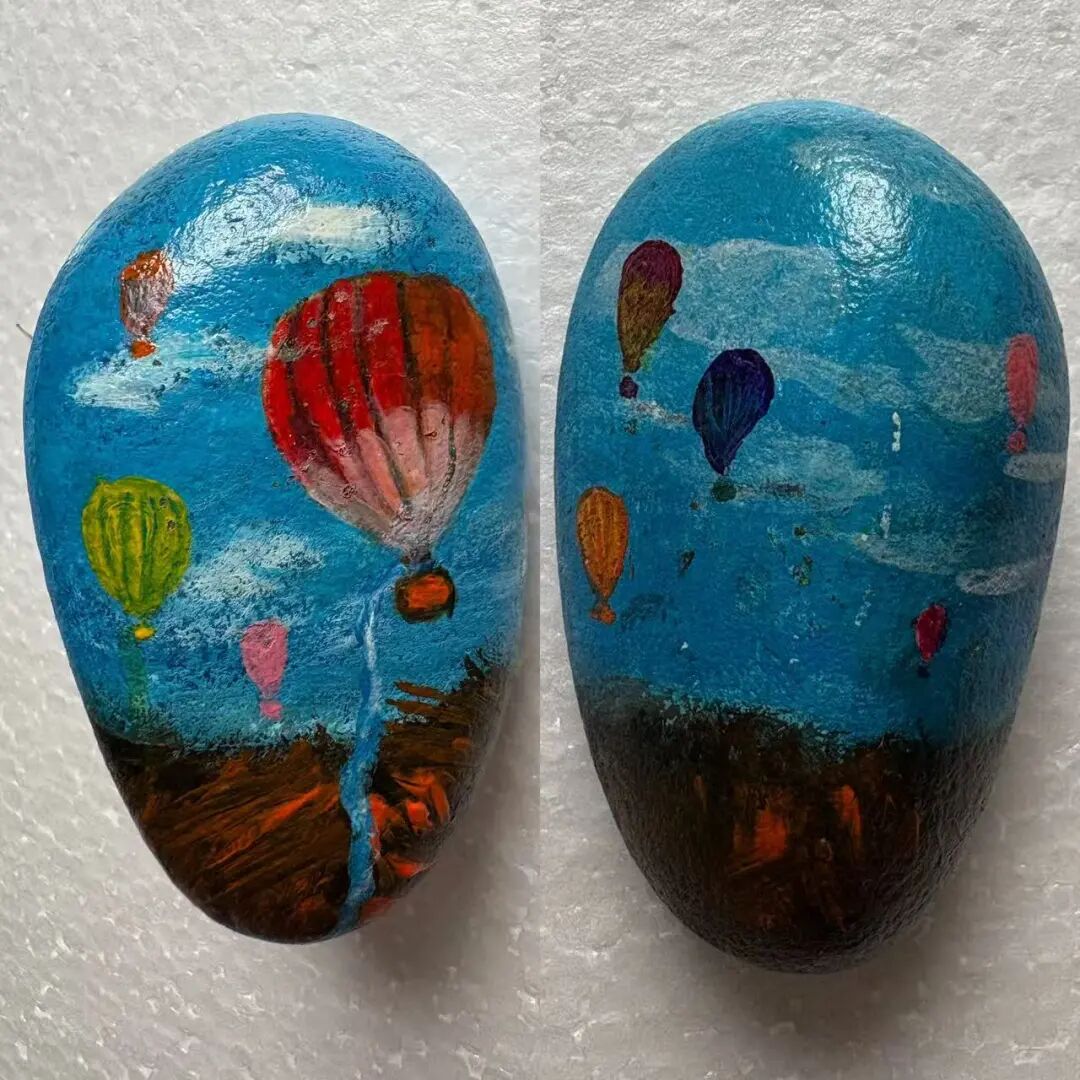 土耳其的天空 丙烯石头画 5X8cmX 2 张丽嘉