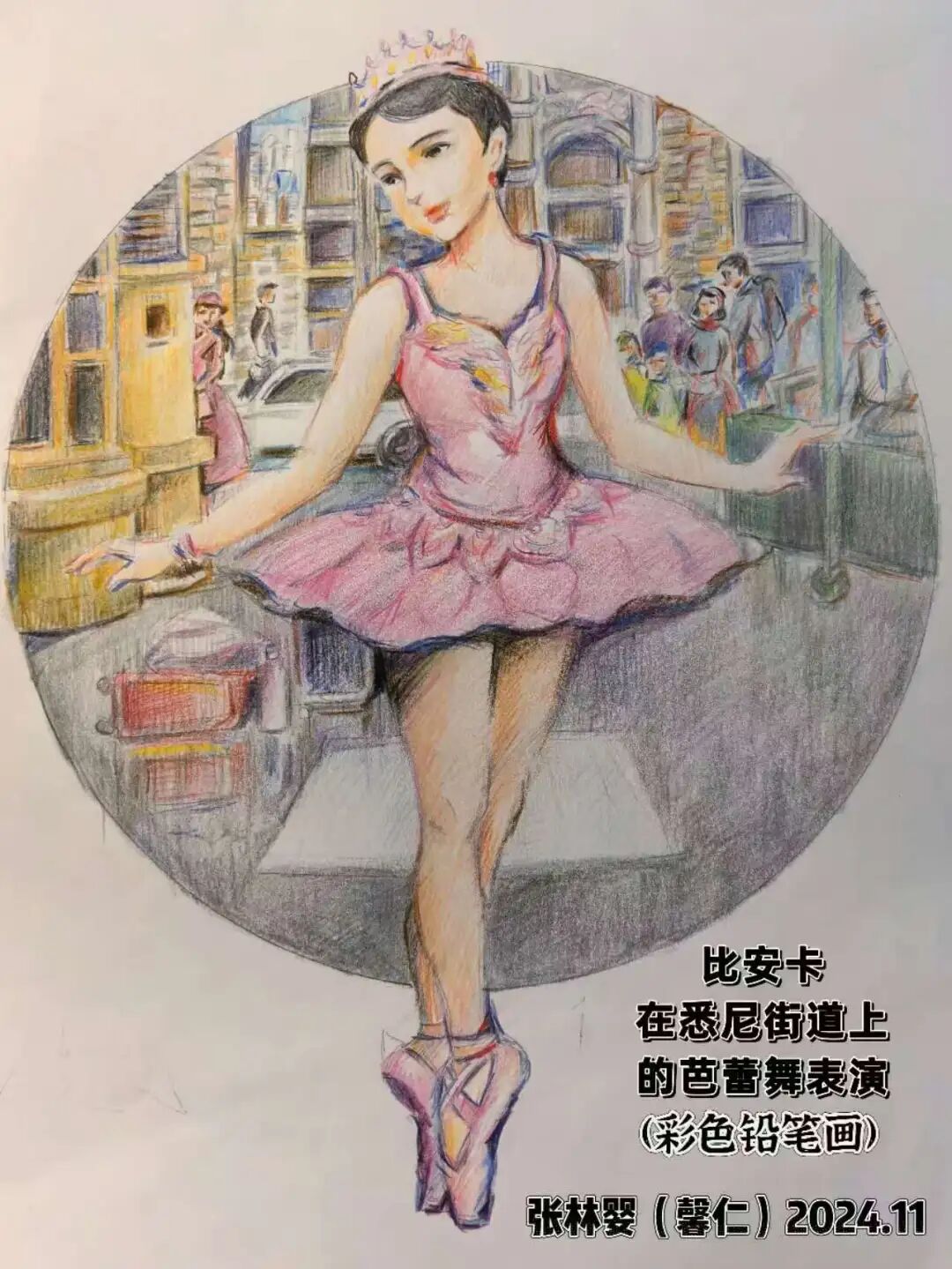 比安卡在悉尼街上的芭蕾舞表演 彩色铅笔画 张林婴