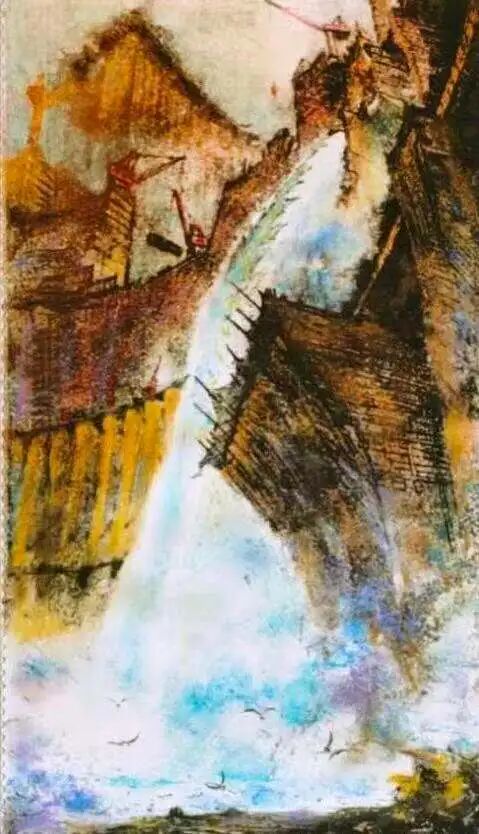 彩橋蝠韻鋼筆油彩畫 42X30cm 陳春民