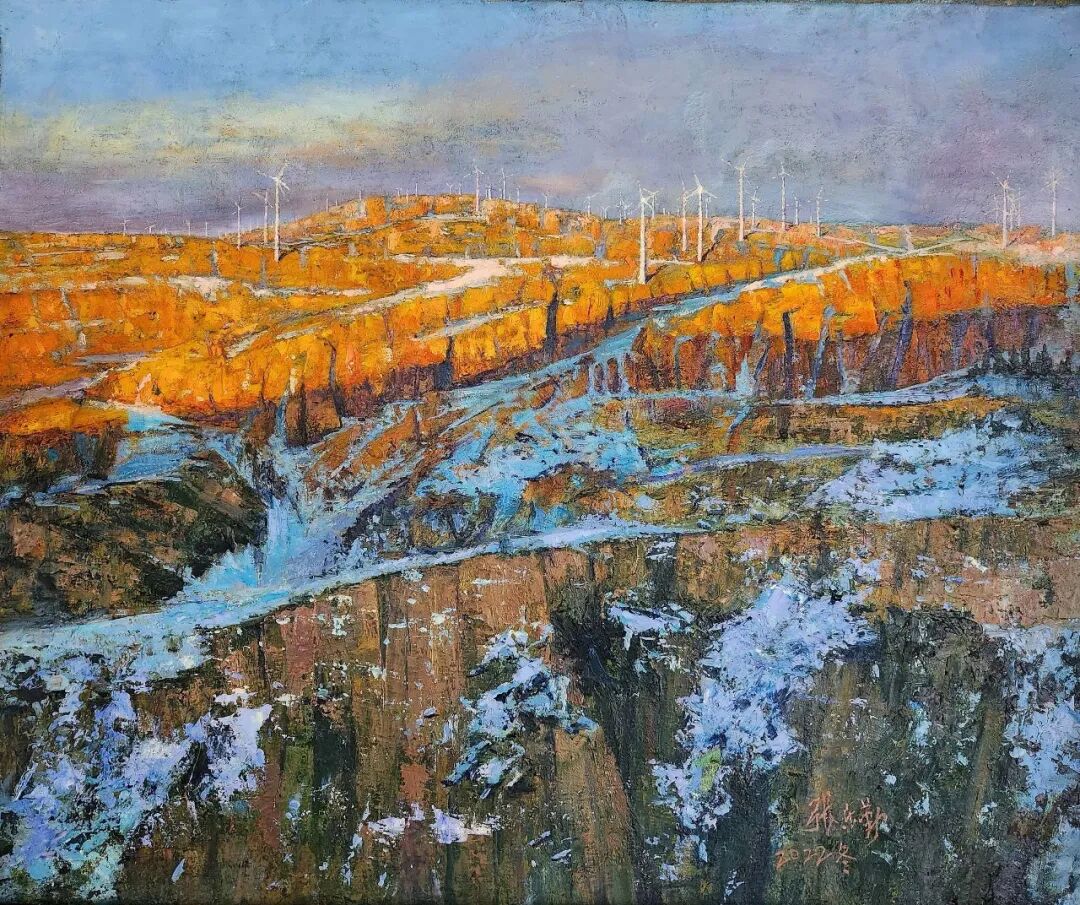 塬上 甘肃河西风电 油画 65X54cm 张乐勤