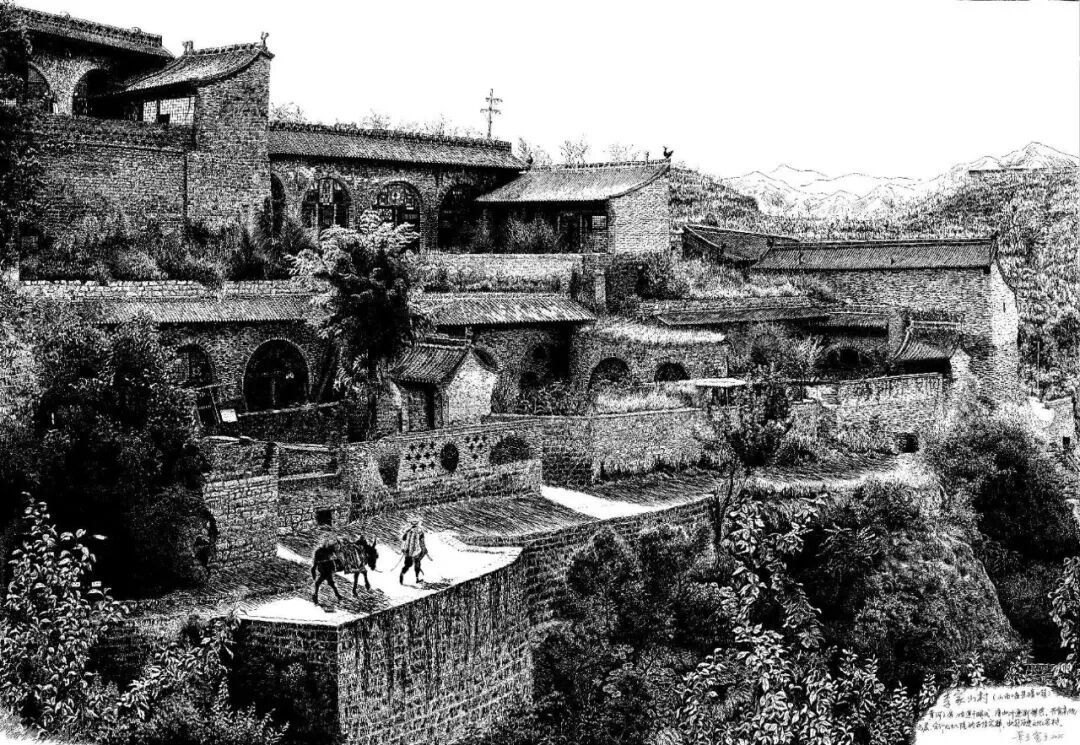 山西碛口镇李家山村 钢笔素描 59.4X84.1cm 景亚霓