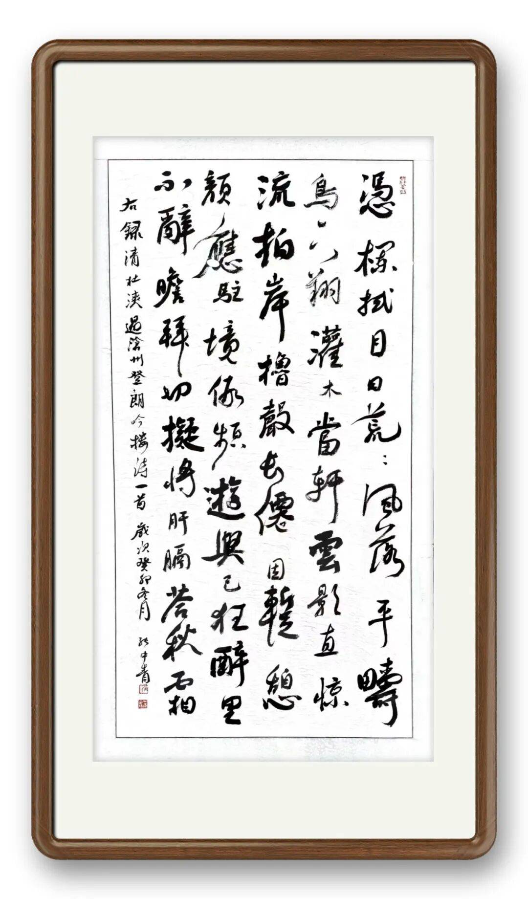 真正的书法艺术从不孤芳自赏,而需融入时代、贴近生活。张中青作品多次入选省级以上权威赛事并获奖,更被沧州南川楼等标志性文旅景点勒石悬挂,印证了其艺术生命力与大众认可度。这些公共空间的墨宝,已超越单纯创作,成为地域文化载体,与山水景致、人文底蕴相得益彰。观者驻足品读,既能感受书法的视觉震撼,亦能体悟颜体蕴含的家国情怀与人文精神,这正是当代书法艺术价值的核心体现。