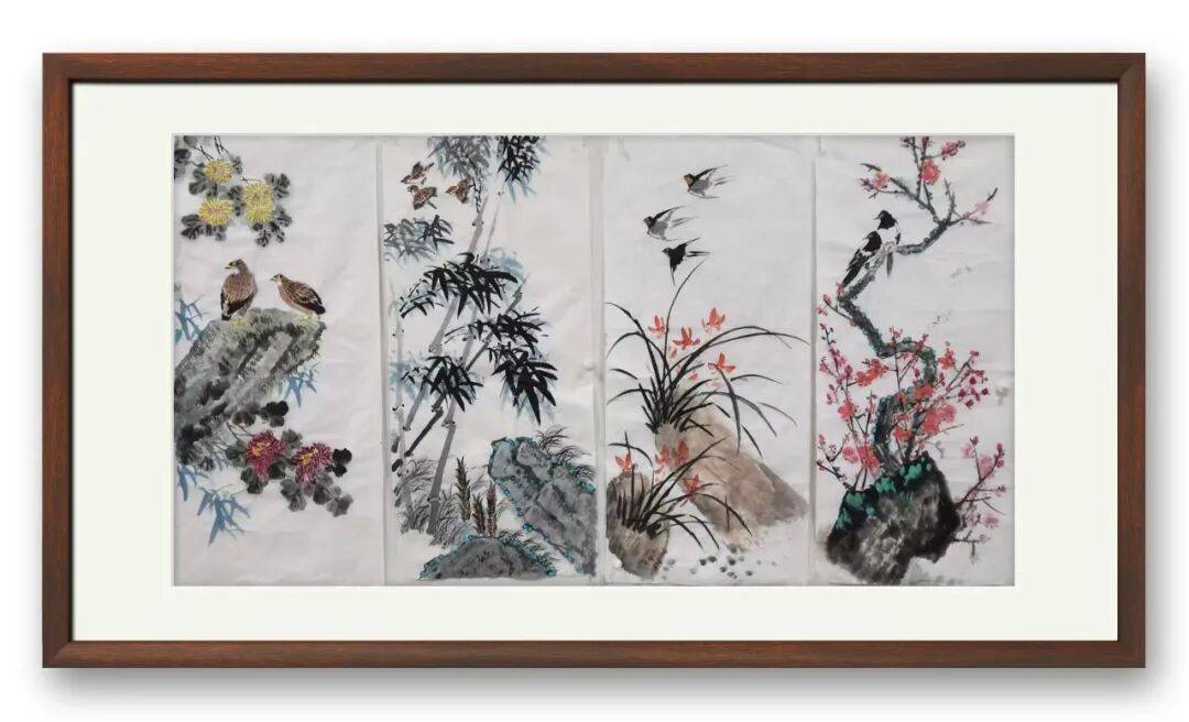 张中青兼攻小写意花鸟,深谙“书画同源”之道,将数十年书法修为融入丹青创作,成就了其画作独树一帜的艺术品格。其花鸟作品最鲜明的特质,便是线条的“书骨”支撑——勾勒花叶枝干的笔触,皆源自书法的提按转折,劲挺有力、骨力内蕴,无丝毫软媚浮滑之态。无论是含苞待放的花卉,还是灵动鲜活的禽鸟,皆以凝练的线条塑形,既精准把握物象神韵,又赋予笔墨独立的艺术价值。色彩运用上,他秉持清雅脱俗之风,摒弃浓艳堆砌,以淡彩晕染出简约意境,与劲挺线条相互映衬,尽显传统文人画“得意忘形”的审美旨趣。这种以书入画的创作路径,不仅让其花鸟作品扎根传统沃土,更因书法笔墨的注入而兼具人文厚度,成为其艺术成就中不可或缺的重要组成,也印证了他对中国传统书画艺术整体性的深刻体悟与精准践行。