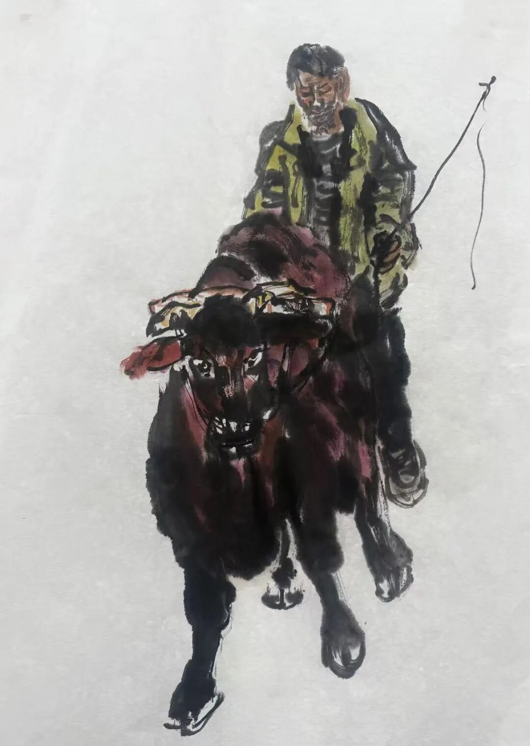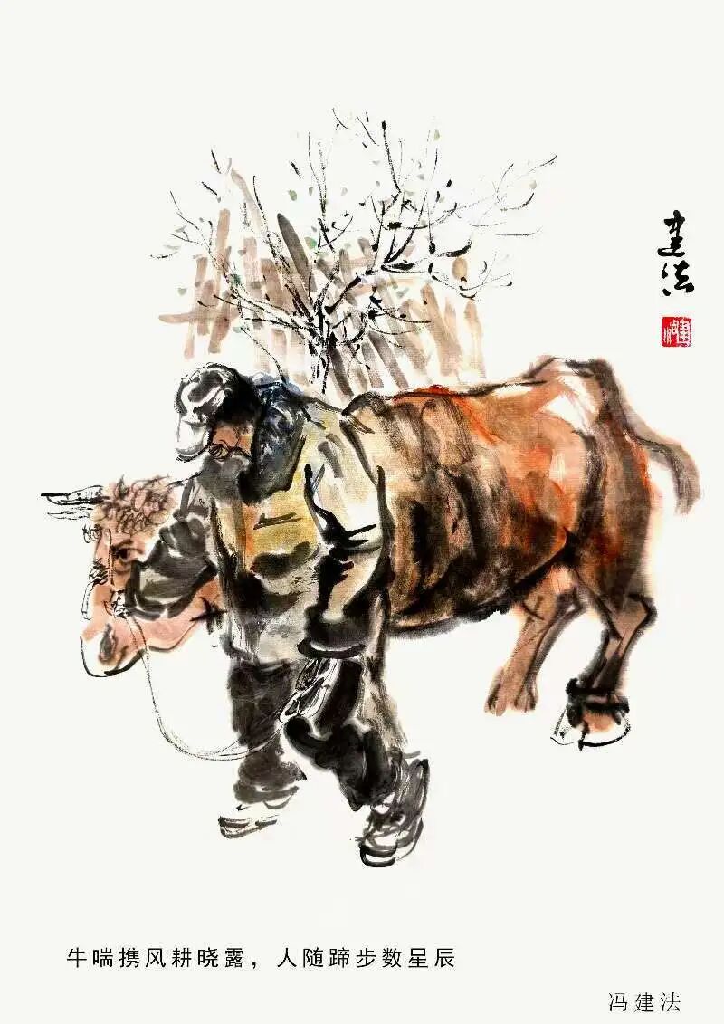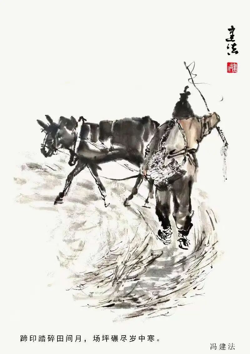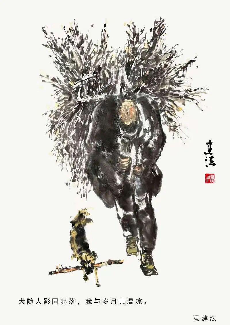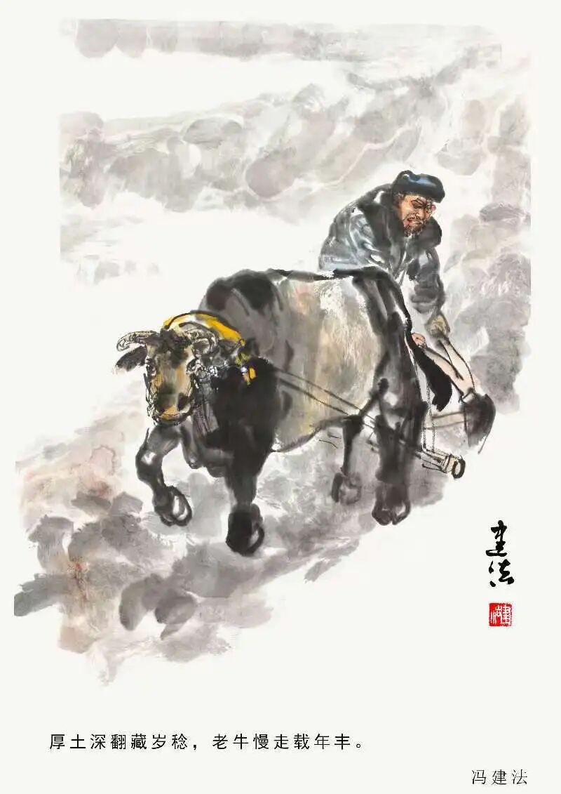冯建法太行农耕系列作品,既是对太行石刻艺术之水墨转译,亦是对大写意人物画之时代革新。他以石刻风骨立水墨之体,以太行耕魂铸作品之魂,令太行题材大写意人物画于传统与现代之碰撞中焕新生命力,亦为当代中国水墨人物画之地域化、个性化探索提供极具价值之艺术范式。