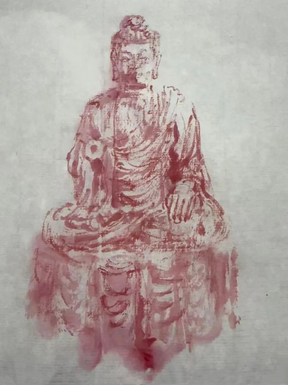 色彩之运用亦与石刻美学相呼应,《太行晨耕》中耕牛之赭石色晕染、《太行驮秋》里红色日轮之点染,以极简之色彩对比凸显太行劳作之生命温度,如石刻造像之敷彩般质朴而浓烈,与墨色之苍黑形成冷暖平衡,令长卷画面于厚重中兼具灵动。