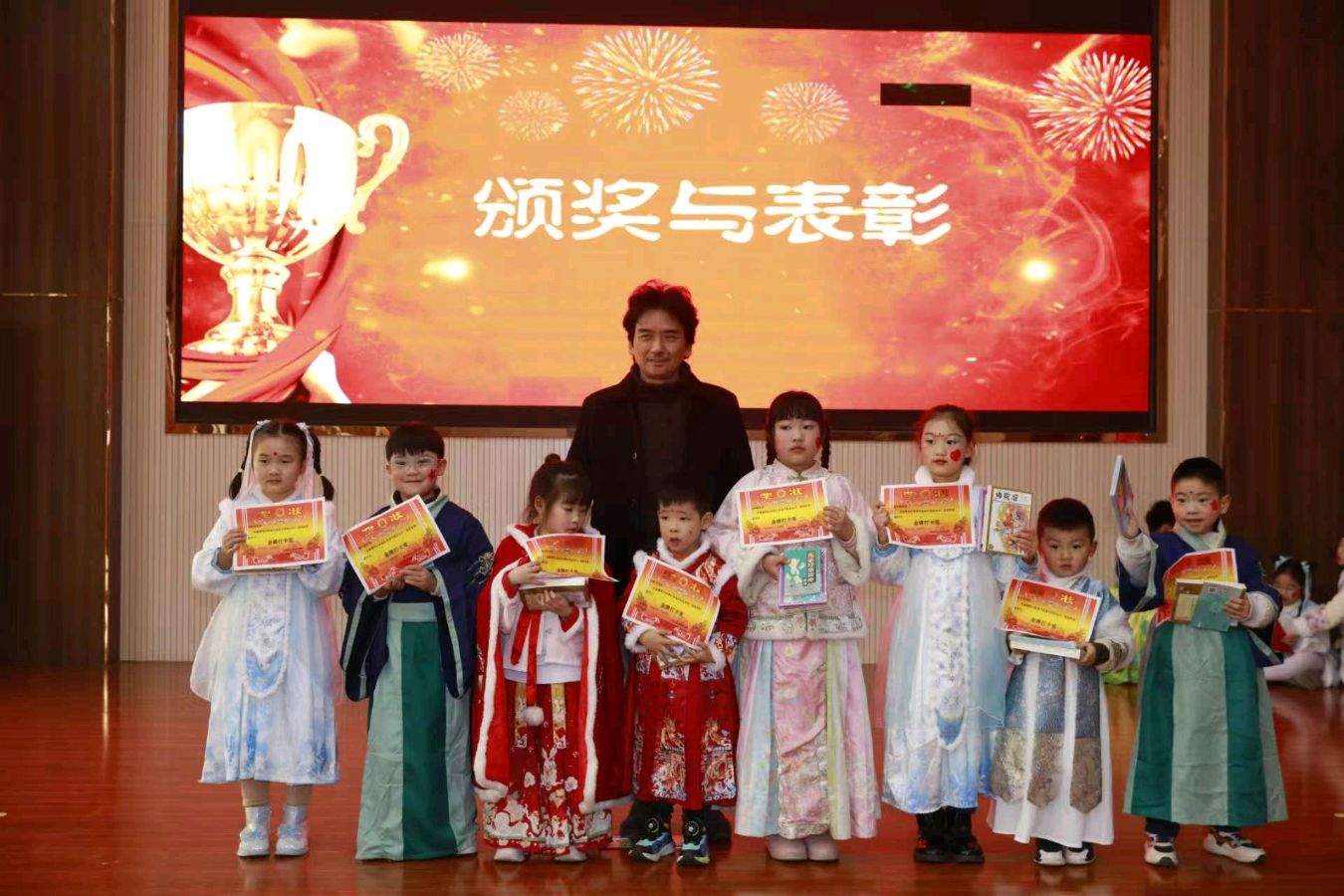 表彰颁奖环节如期进行,“金牌打卡奖”“全勤之星奖”等多个奖项逐一揭晓,嘉宾与老师为身着汉服的获奖学员、家长颁发奖状与纪念品,以榜样力量激励全员勤学笃行、持续奋进。“惊喜砸金蛋”互动环节将气氛推向高潮,学员凭“勤学积分”兑换砸蛋机会,惊喜礼品接连揭晓,汉服少年们的欢声笑语满溢会场。