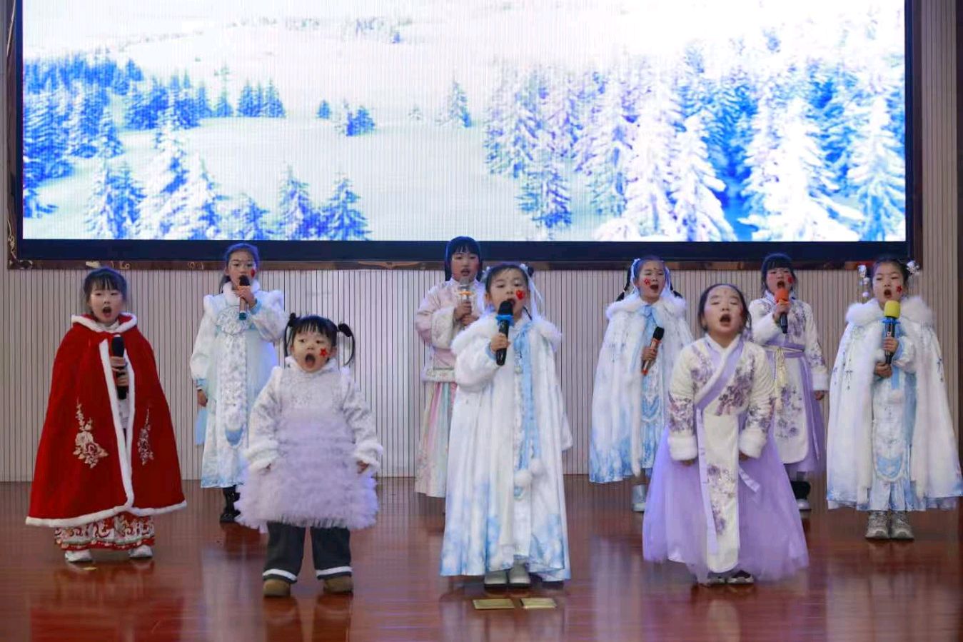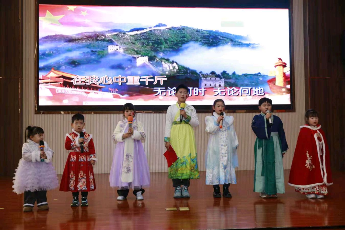 全体学员身着汉服集体朗诵《写中国》,列队整齐、语调深情,汉服雅色与祖国山河背景视频交相辉映,搭配恢弘配乐,绘中华辽阔壮美、颂文脉源远流长,满溢中华儿女的骄傲与自豪;童声独唱《小美满》,演唱者汉服加身,旋律纯净甜美,轻柔配乐烘托童真烂漫,唱尽童年点滴幸福与未来憧憬;亲子手语舞《感恩的心》,家长着装整洁大方,孩子身披汉服,动作整齐深情,每一个手势都饱含对父母养育、师长教导、社会关爱的谢意,温馨互动让现场暖意浓浓。
