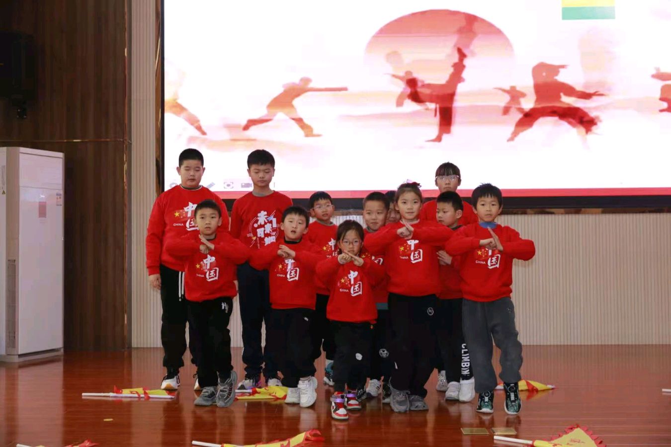 分组朗诵《沁园春·雪》,孩童身着汉服配雄浑配乐与北国风光画面,以富有感染力的声音,再现词中壮阔景象与豪迈胸襟,汉服形制更衬少年意气;《满江红》配乐朗诵融合武术造型,现场古筝伴奏衬出悲壮激昂,身着汉服的学员语调铿锵,传递岳飞精忠报国的赤胆忠心,令观众热血沸腾;嘉宾带来武术操《精忠报国》,动作刚劲划一、伴着激昂歌声,与汉服学员的诵读遥相呼应,尽展中华武术力与美,弘扬忠勇爱国传统美德。