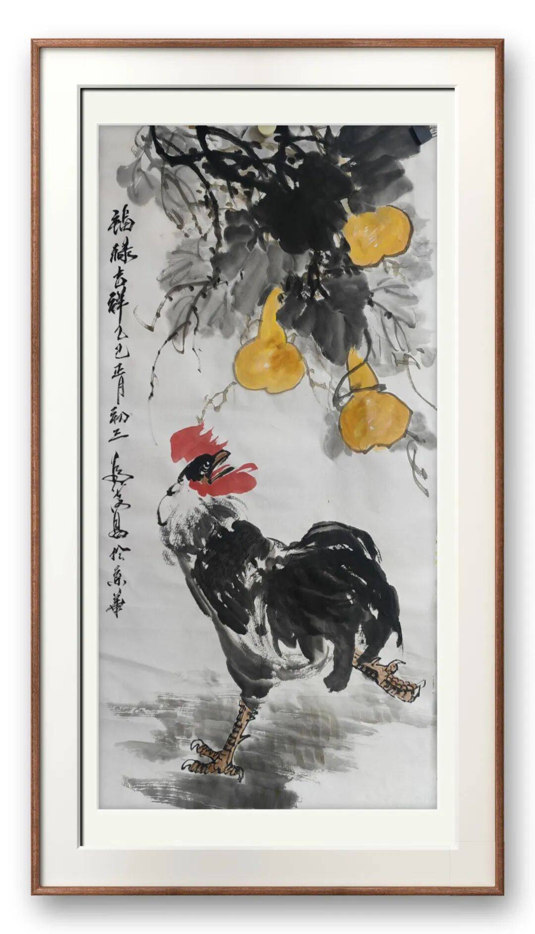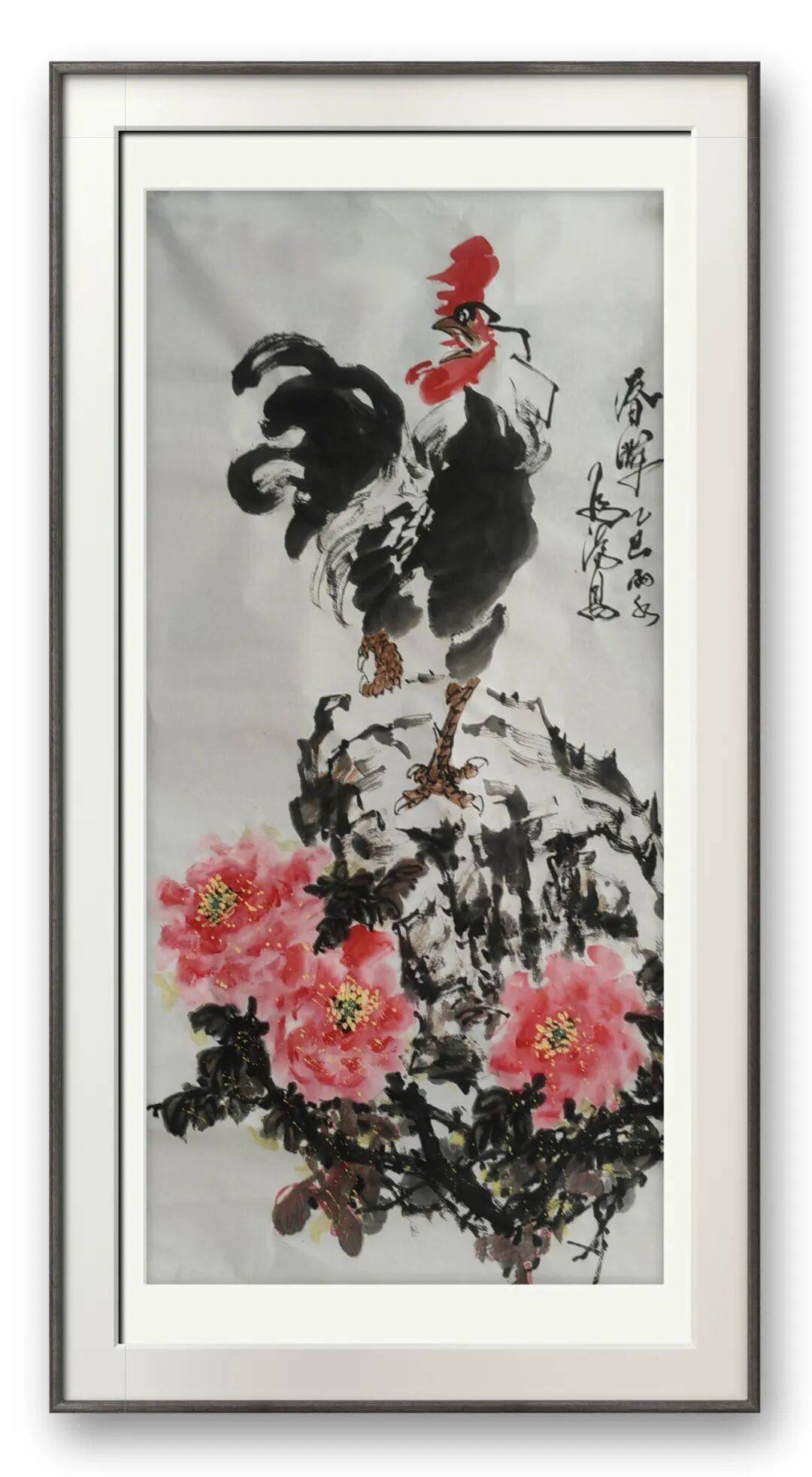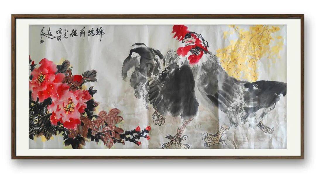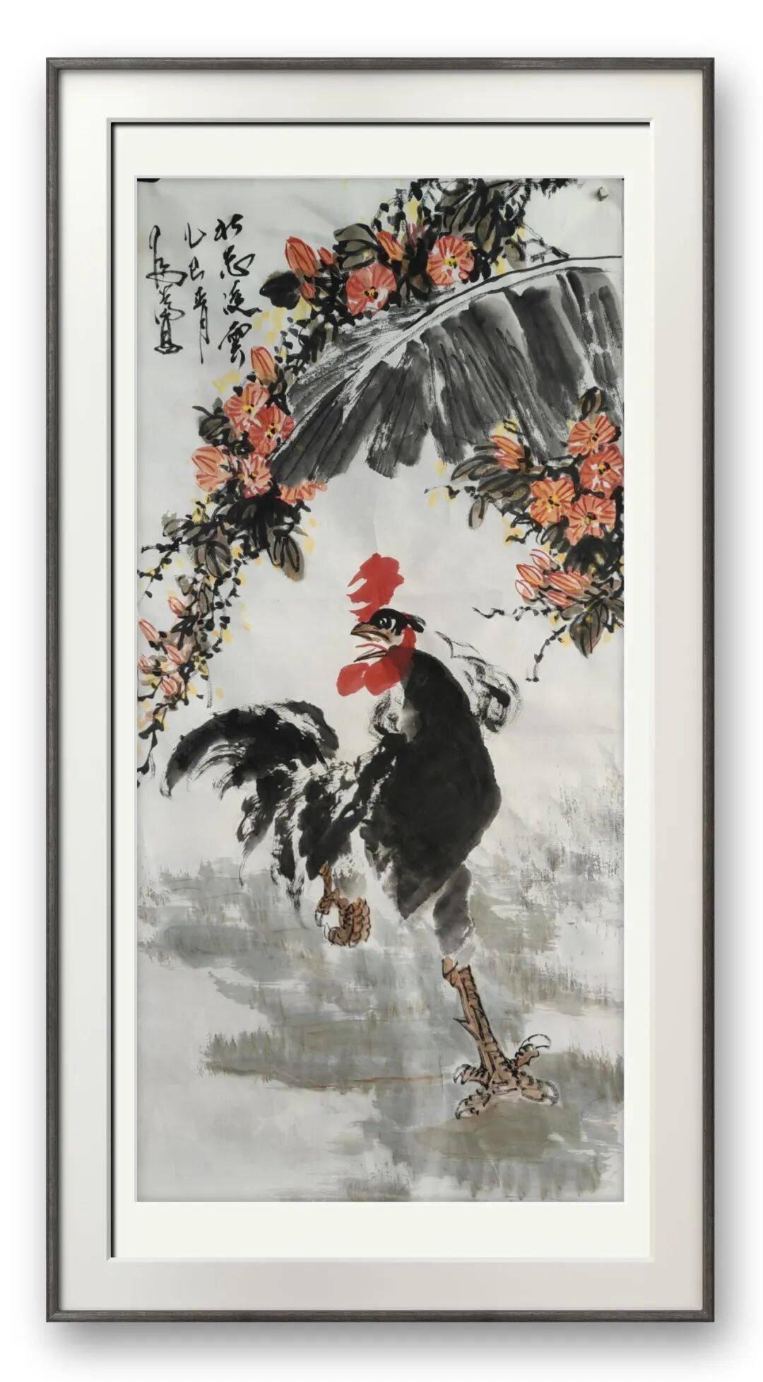 马满昌以画鸡为长,笔下雄鸡千姿百态、神韵具足。他以焦墨勾喙、浓墨点羽、淡墨染绒,寥寥数笔便现雄鸡昂首之态。其创作不耽工细,以笔力传精神,笔下之鸡兼具烟火温润与文人傲骨,将这份神韵推至极致,成为各界推崇的上品。