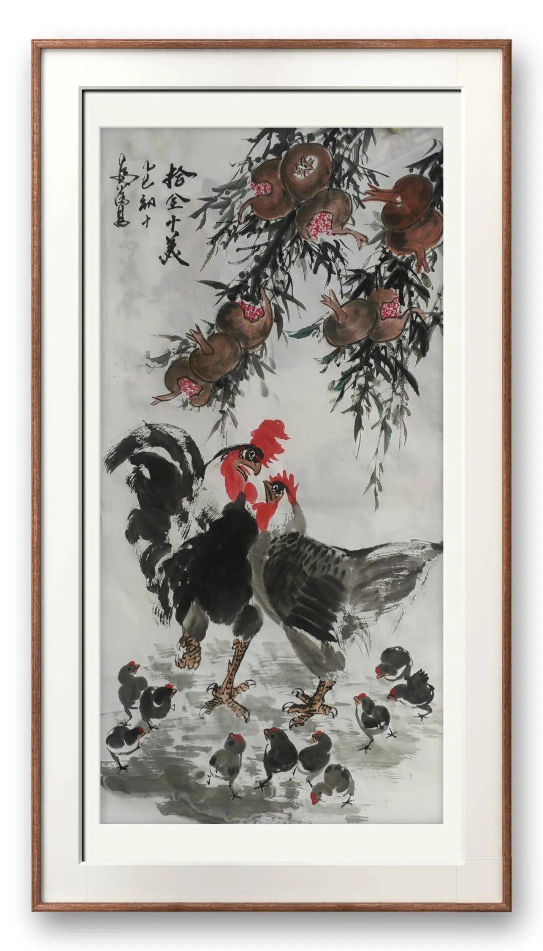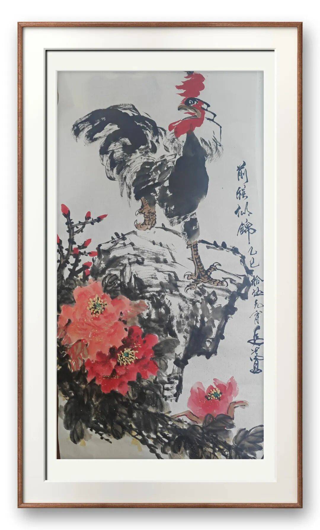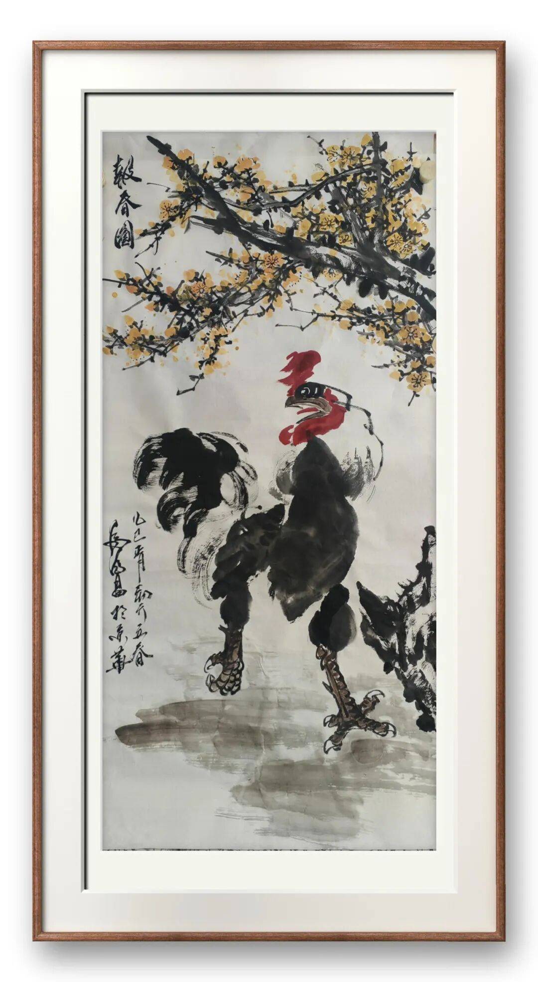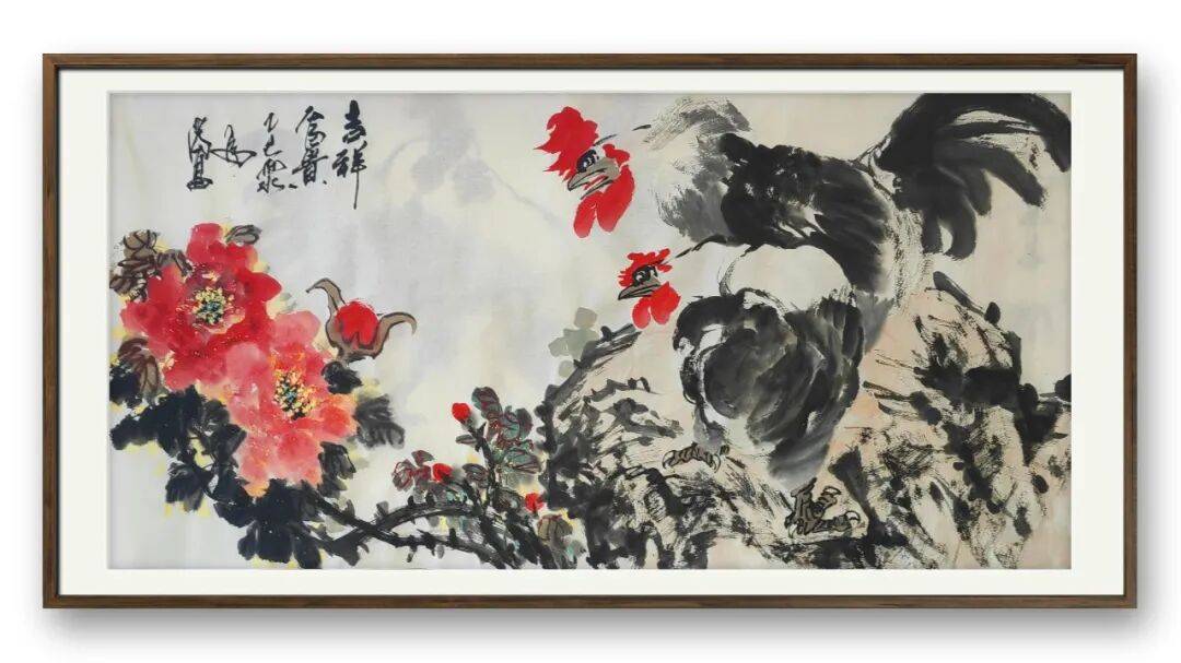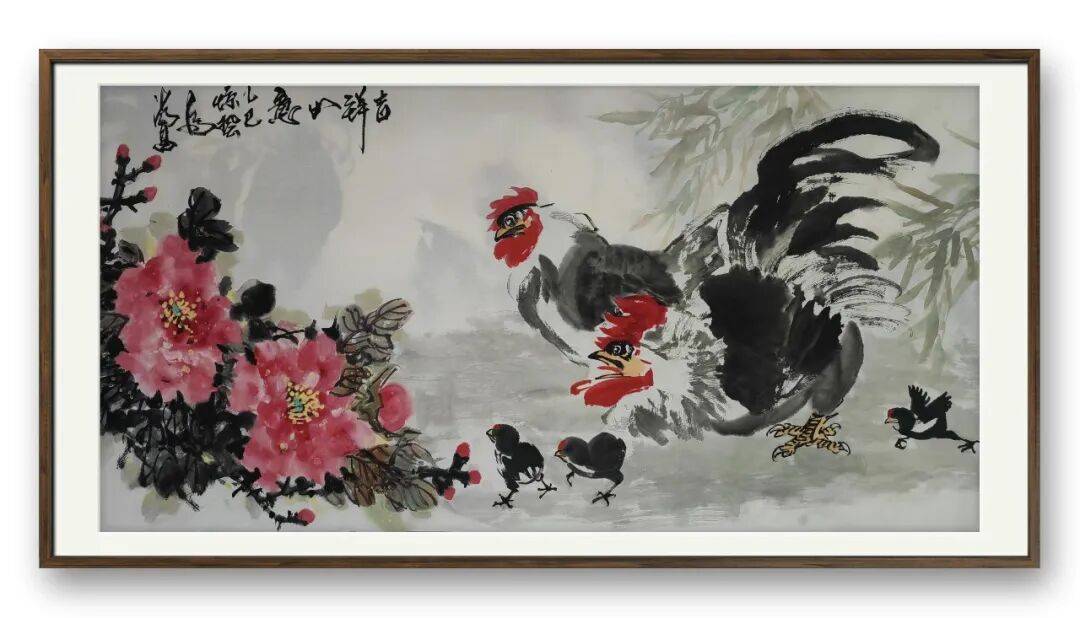 马满昌以画鸡为长,笔下雄鸡千姿百态、神韵具足。他以焦墨勾喙、浓墨点羽、淡墨染绒,寥寥数笔便现雄鸡昂首之态。其创作不耽工细,以笔力传精神,笔下之鸡兼具烟火温润与文人傲骨,将这份神韵推至极致,成为各界推崇的上品。