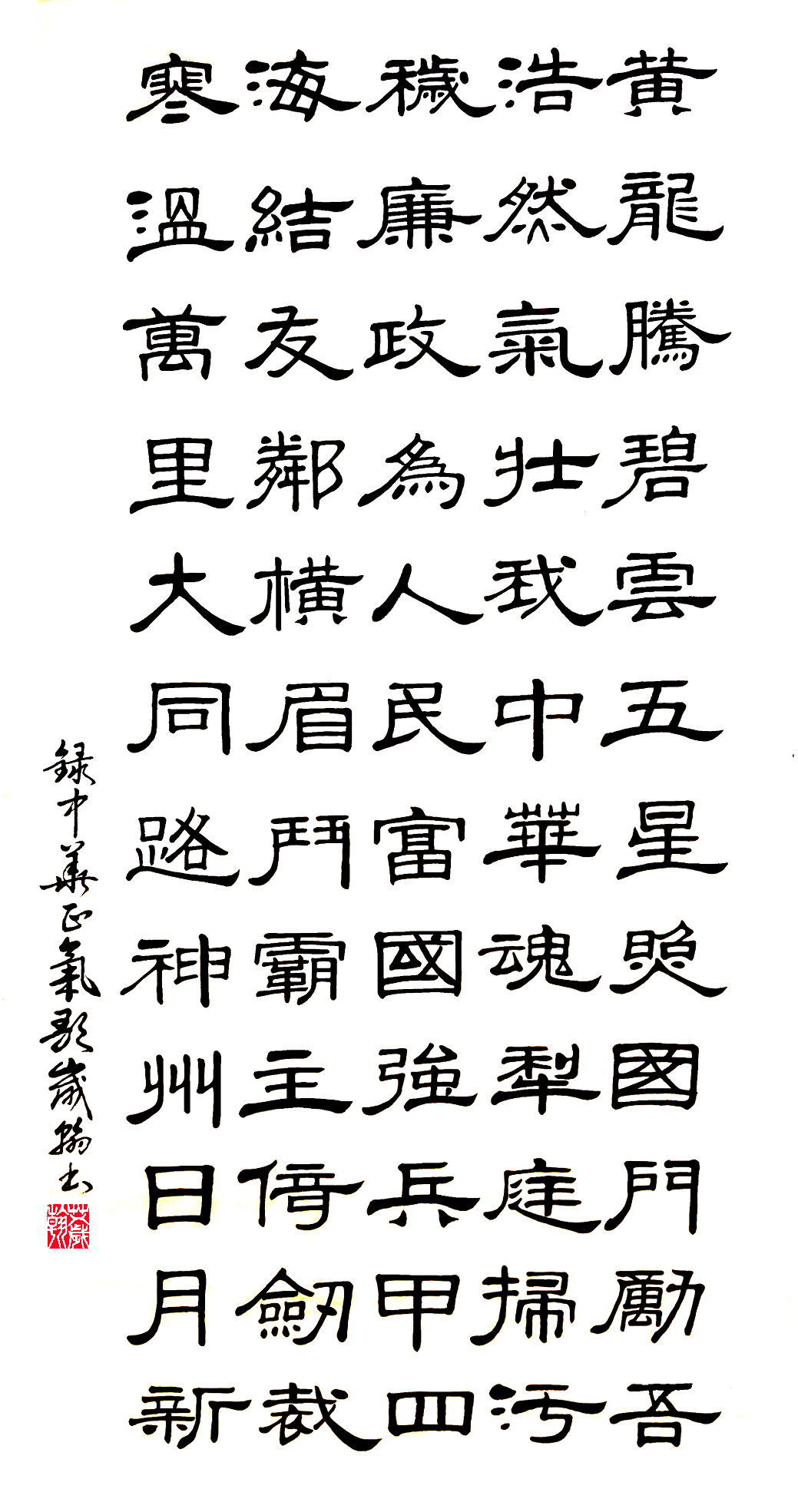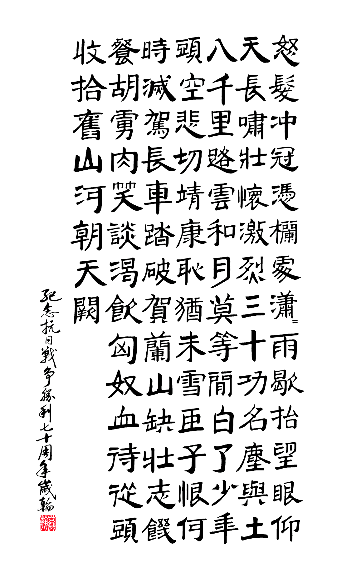 艾岁翰,原名抗美,笔名岁寒等。1951年生。原江西省气功科学研究会秘书长,江西师大中文系客座教授,美国中华教育学院客座教授,现为广东省书法家协会会员,深圳市书画家协会会员,国家一级美术师(书法),中国医学气功学会会员。深圳开放大学退休干部。多年来孜孜以求继承传统,融隶楷魏为一体,逐渐形成了具有自己风格特色,结构秀美饱满工整,笔调柔韧稳健有力的隶楷体书法。作品在各类书法大赛中屡获金奖,被授予"中国国礼(陶瓷)书法艺术家","中华爱国书画家"等称号。因爱好传统气功静坐凡四十年,发表过《浅谈书法与气功》等文章,其书法被爱好者誉为能量书法。