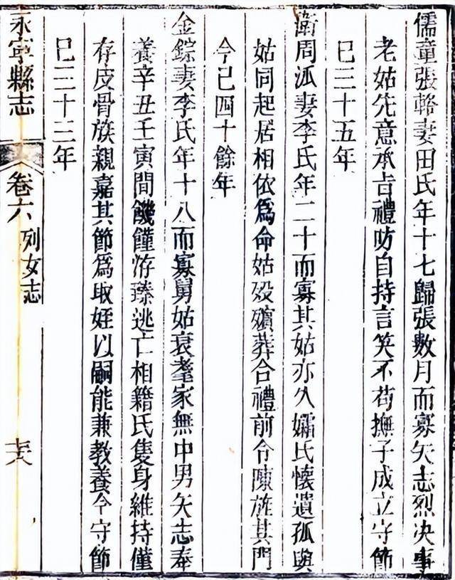 儒童张辂妻田氏,年十七归张,数月而寡,矢志烈决。事老婆母先意承旨,礼防自持,言笑不苟,守节三十五年。