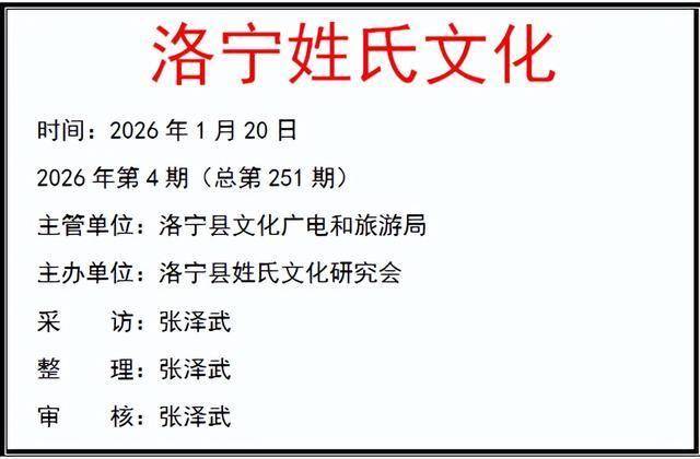 作者简介:张泽武,洛宁县陈吴乡新寨村人,2003年,发起并成功组织成立了洛宁县姓氏文化研究会,担任常务副会长兼秘书长一职,2006年参与组织筹备成立洛阳市姓氏文化研究会,任副秘书长。2017年被推举为洛宁县姓氏文化研究会会长。2024年8月再次当选为洛宁县姓氏文化研究会会长。