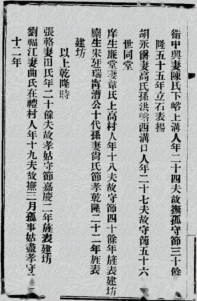 张辂妻田氏年二十余夫故,孝敬婆母,坚守节操。嘉庆二年(1797年)旌表建坊。