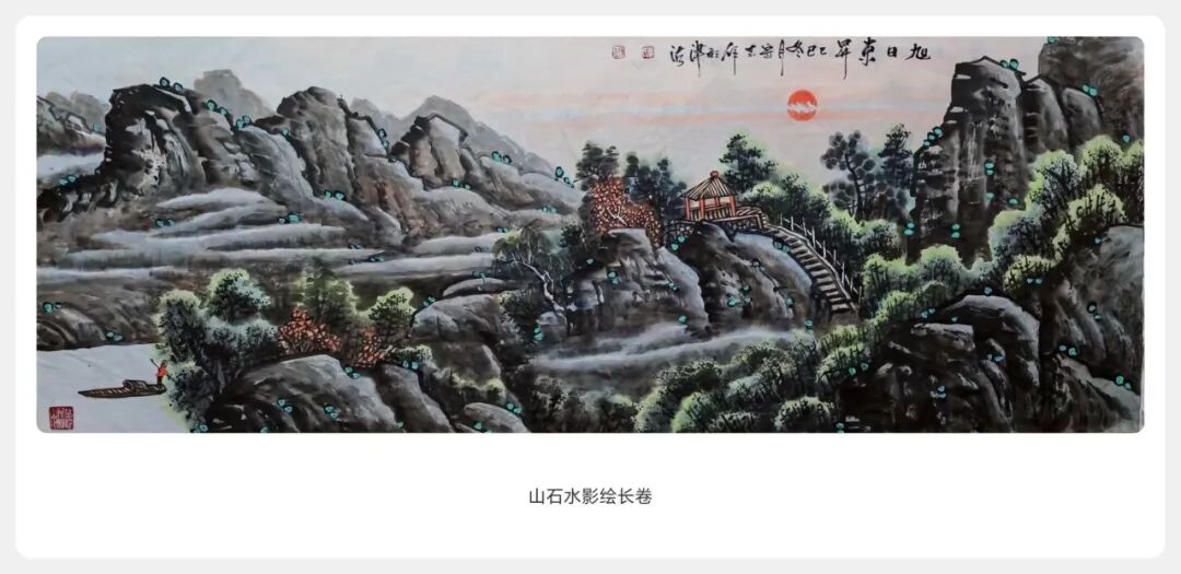他的很多长卷,既吸收了传统形式中的审美方式,同时,又与写生中对动态山水的认知和把握紧密结合,整体布局开张大气,每一个部分都精谨不苟,把描绘万物置于动态的山水感受之中,很有意味。