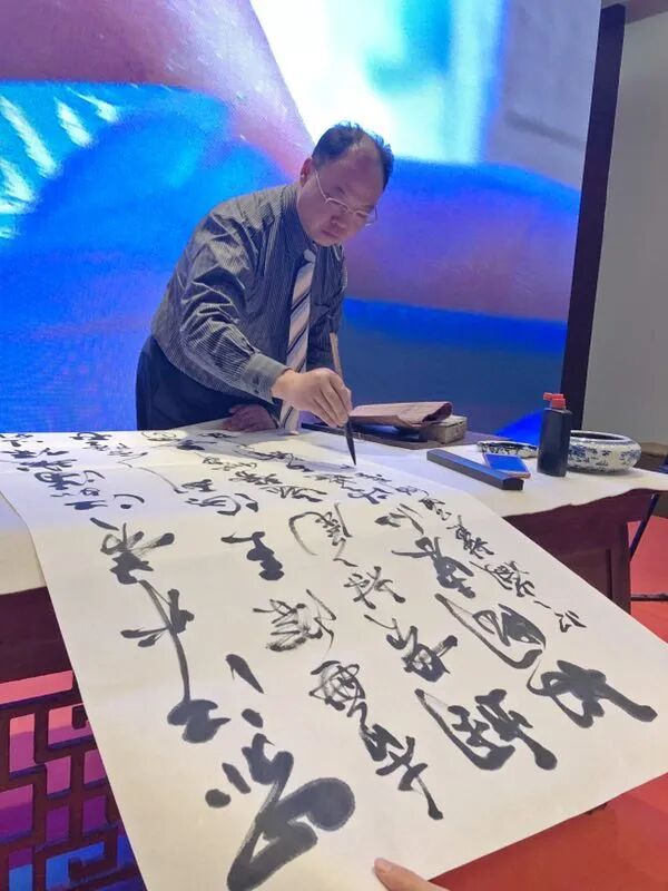 他连续组织8届“湖湘书法教育论坛”和“墨韵湖湘”教师书法作品展。曾应邀在中央电视台《水墨丹青》节目中推广书法教育。他牵头组织“湖湘书法教育论坛”、“墨韵湖湘”教师书法展等活动,将湖南的书法教育推向全国性平台。(如2014年他应邀参加央视《水墨丹青》推广中小学书法教育,2018年又受邀中国教育学会在国家会议中心举办的第一届中小学书法教育展示研讨会,并作了主旨演讲和现场书法展示)。