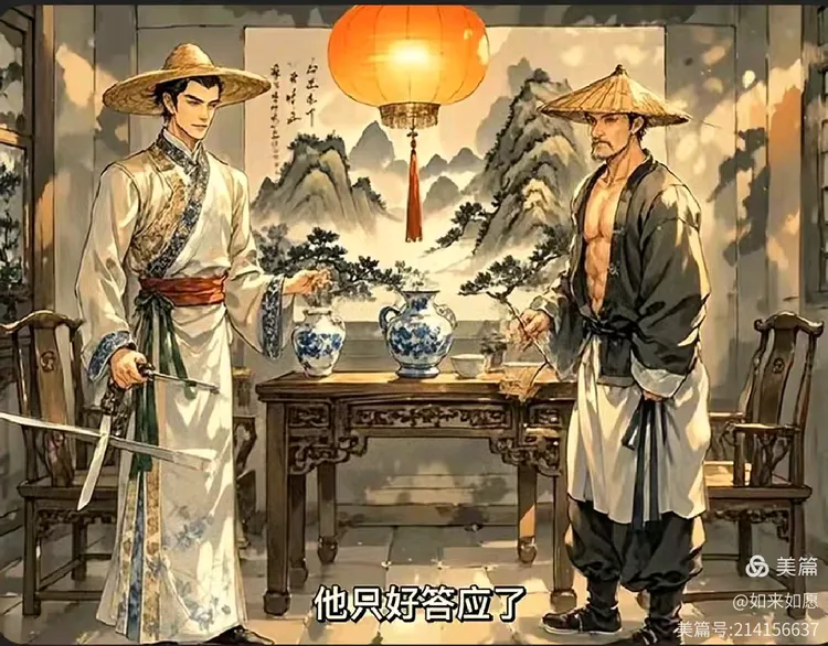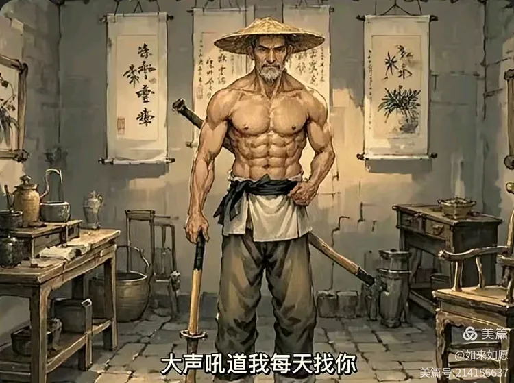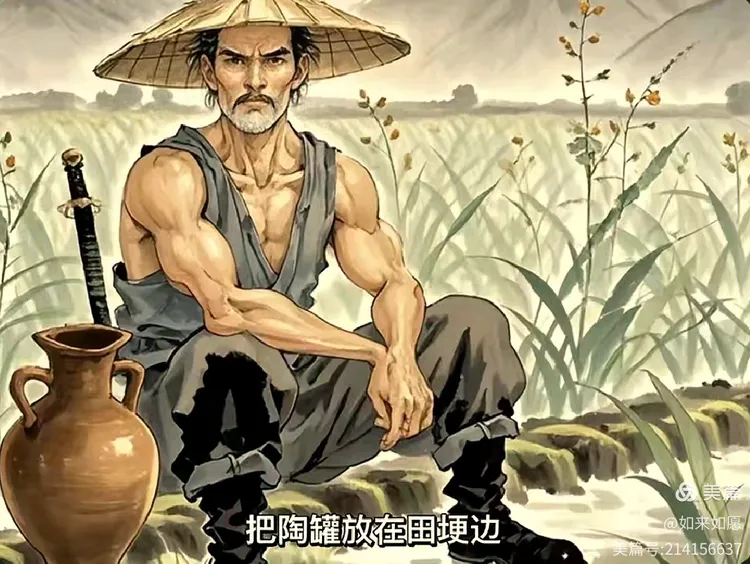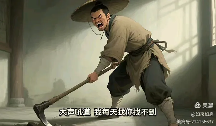 农人戴笠持兵叱,脱窍惊魂夺命驰。