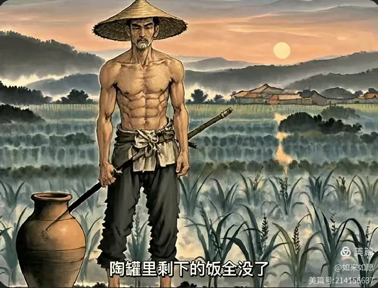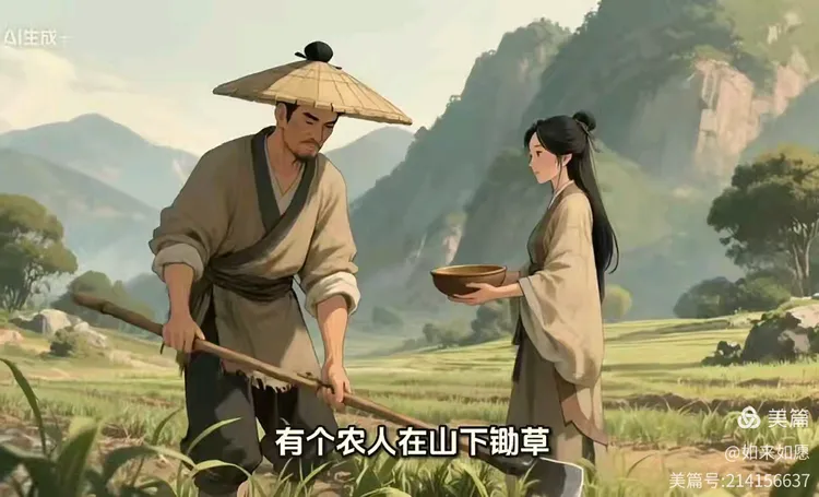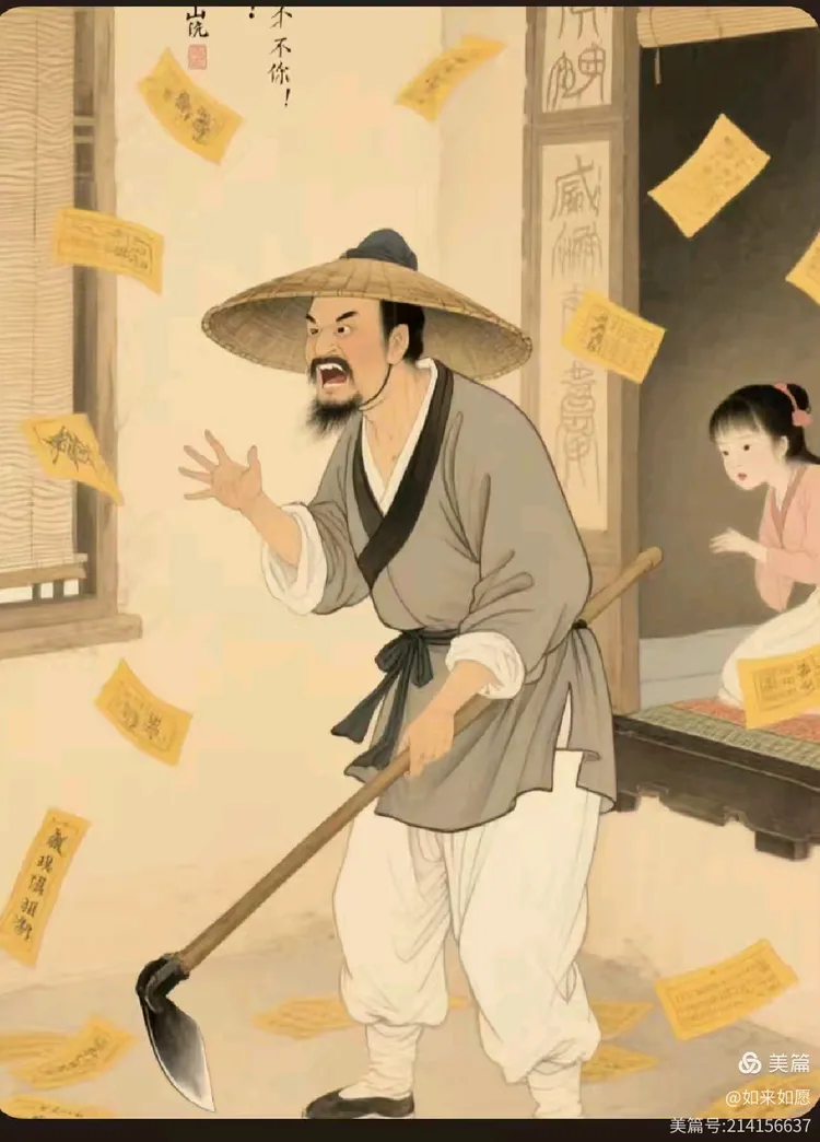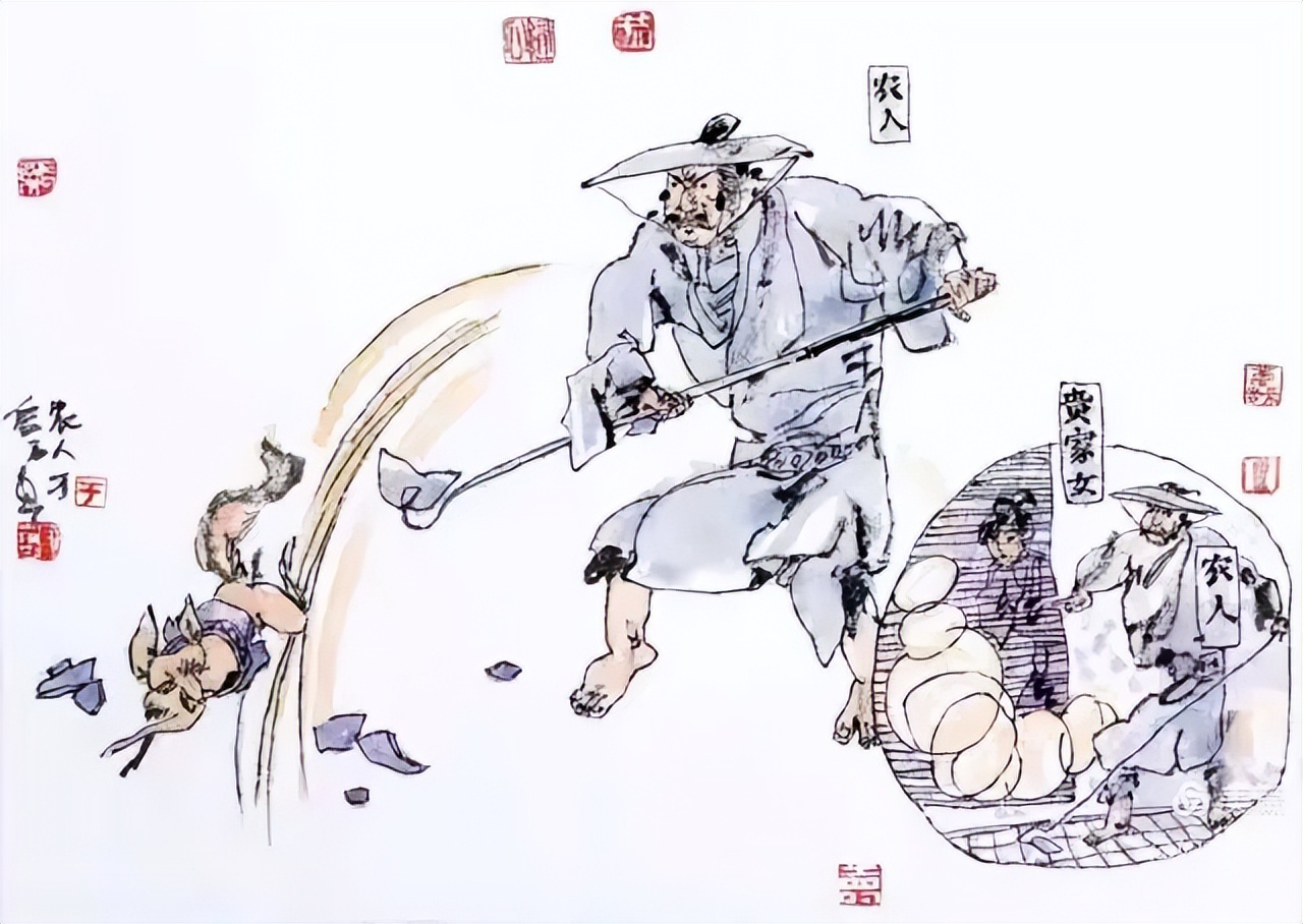 是谁偷吃粥饭无?横眉怒目把其诛。胆肝欲裂魂出窍,惧怕农夫逃命乎。 头戴帽,手持锄,厉声呵斥吓妖狐。抱头鼠窜飞驰去,慧女平安厄运除。