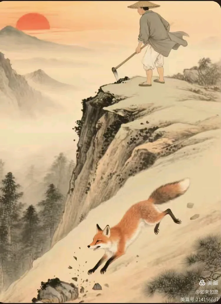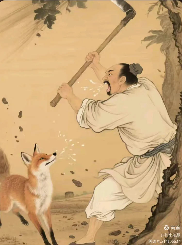 窥见狐狸偷续命,举锄狂揍匿天边。