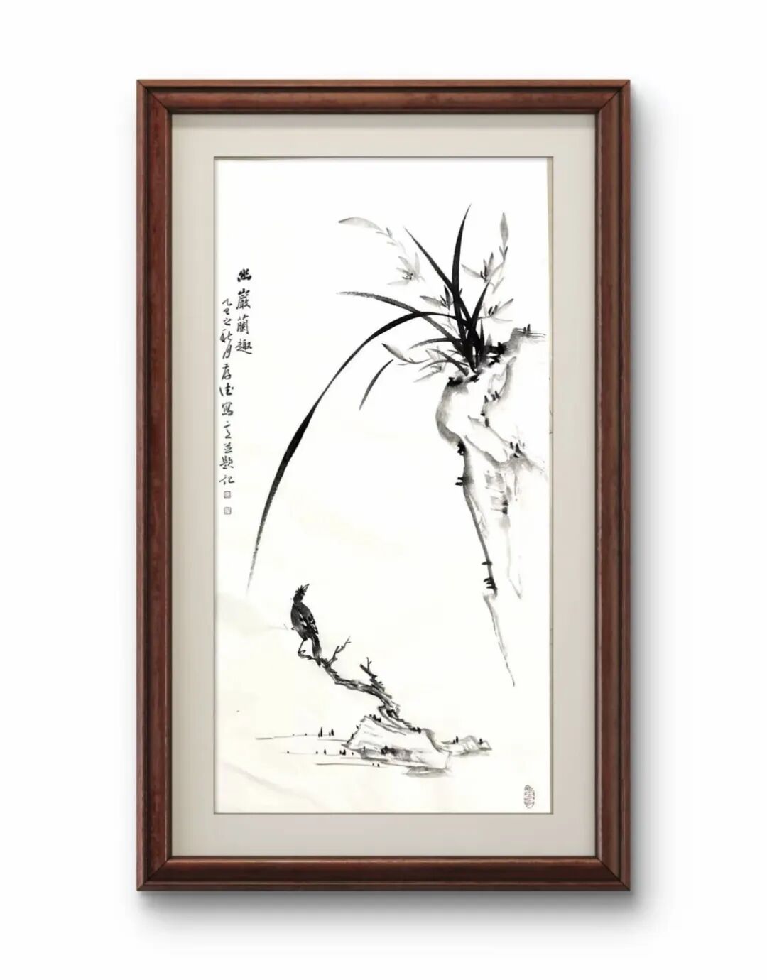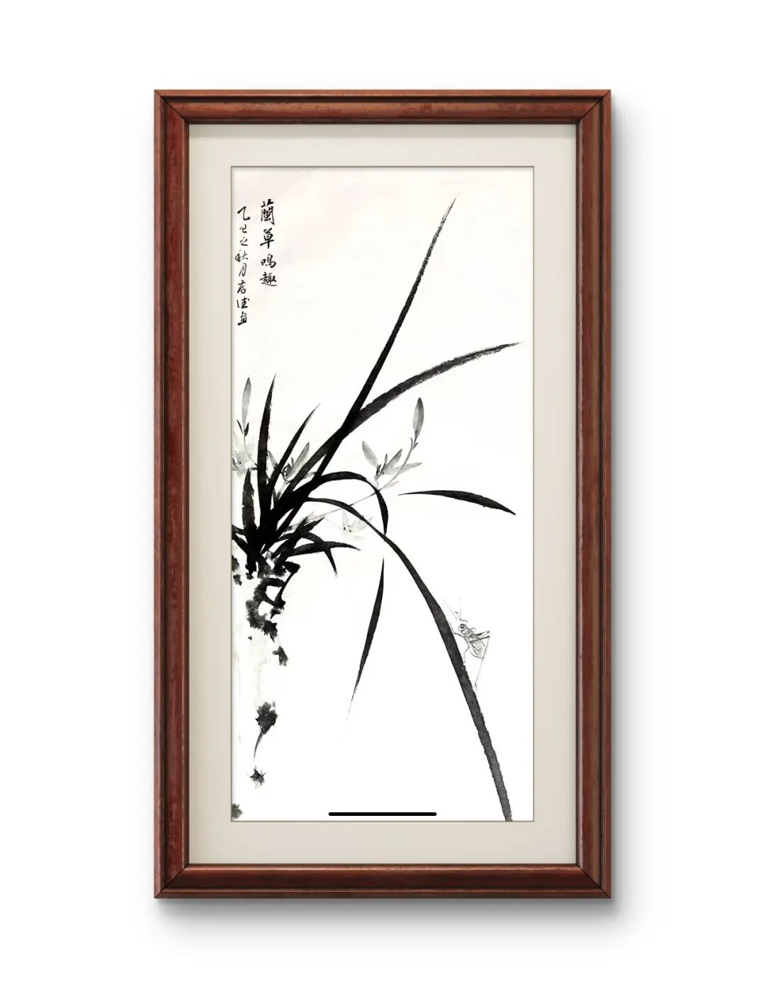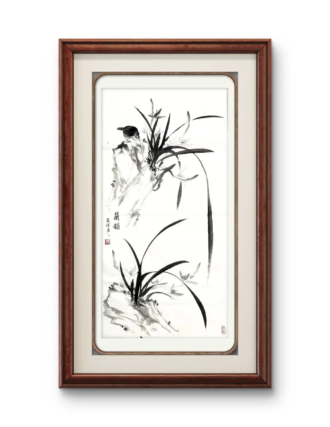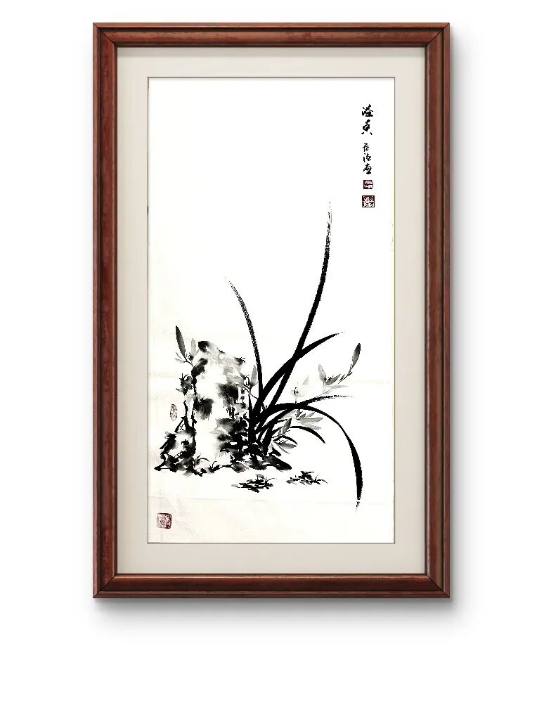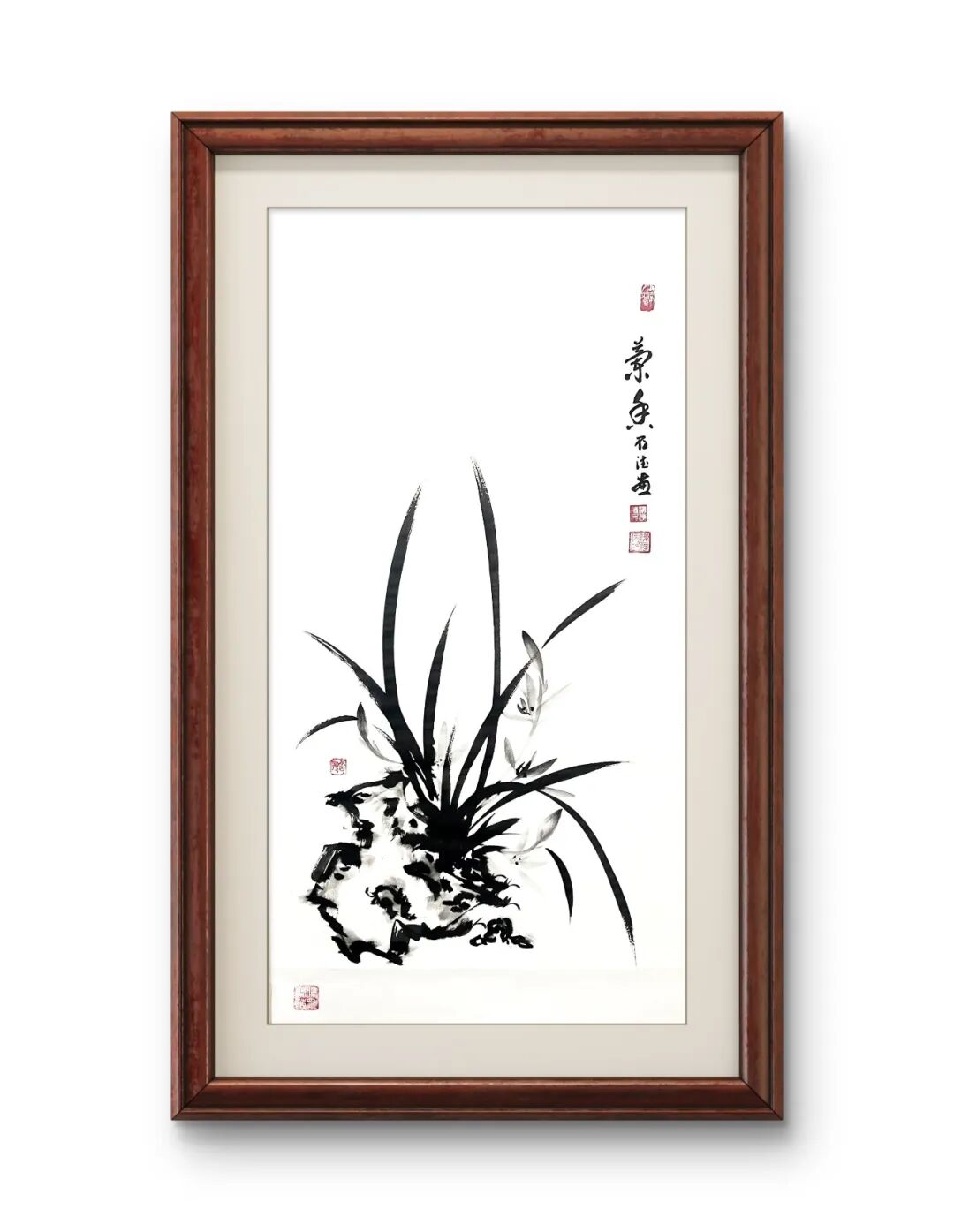 谢存德先生在长期专攻写兰的过程中,积累了深厚的笔墨功底与独特的表现手法。其用笔灵动而不失力度,勾勒兰叶线条流畅婉转,富有弹性和节奏,充分体现出中国画以书入画的书写性特质。在墨色运用上,他善于把握水墨的浓淡干湿变化,通过精微的层次渲染,生动表现出兰叶的向背转折与空间层次,使画面墨色通透,气韵生动。他尤为注重画面意境的整体营造。构图讲究疏密得当、虚实相生,往往以简练的笔墨配以适当的留白,营造出空灵幽远的空间感,令观者如置身清谷幽涧,感受到兰草所处的静谧环境与高逸气息。