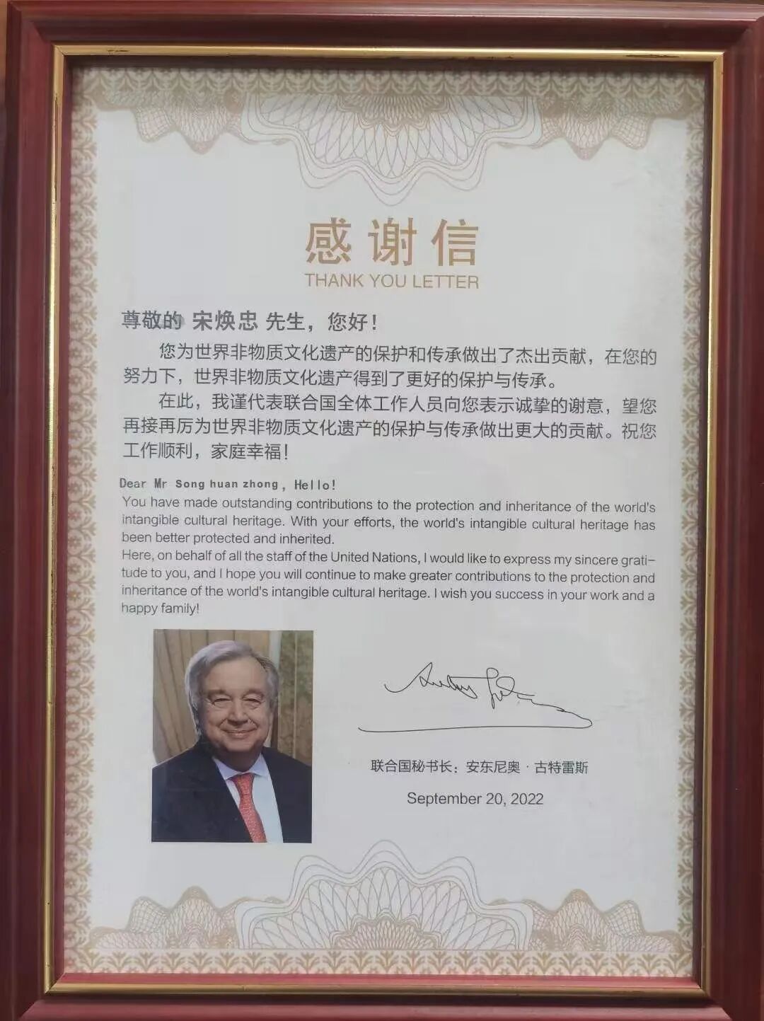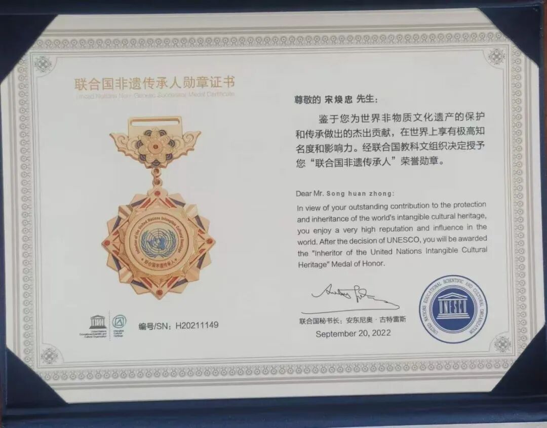 \ 宋焕忠大师2022年被联合国授予非遗艺术传播大使及非遗贡献奖