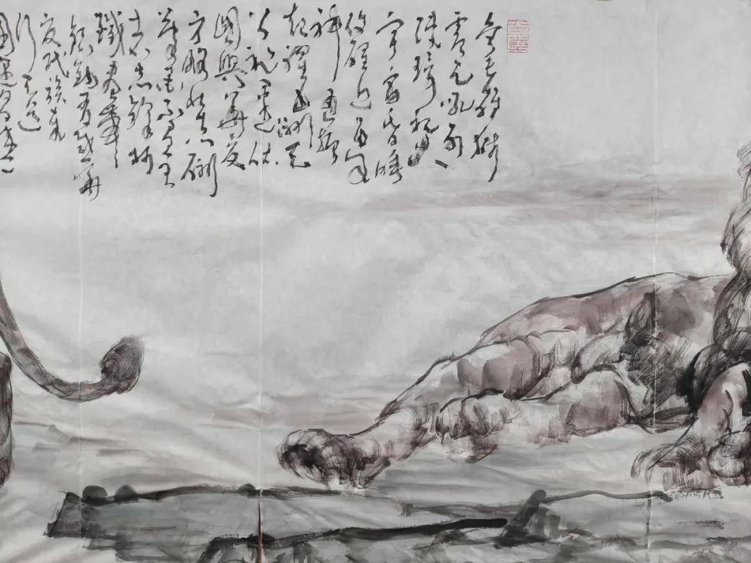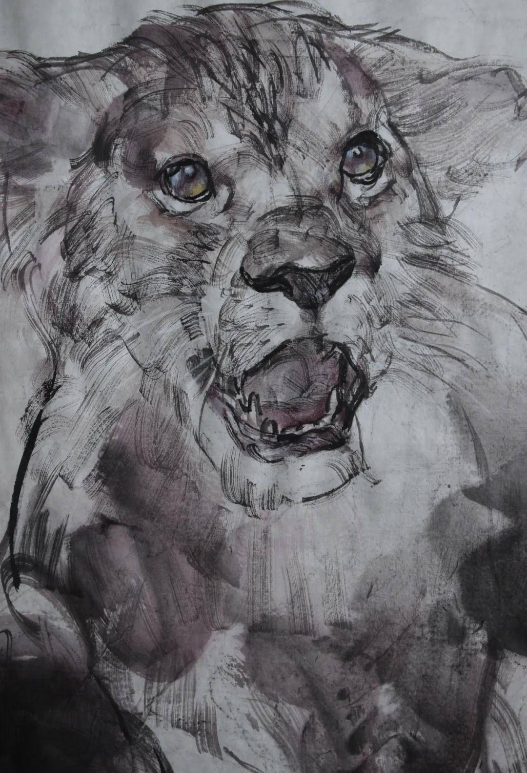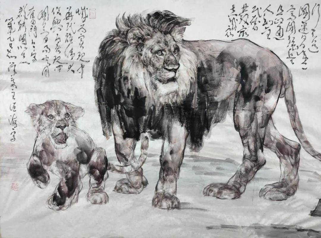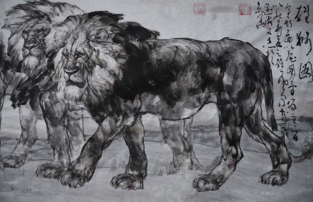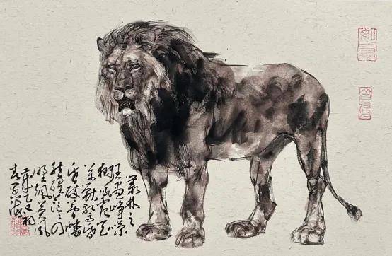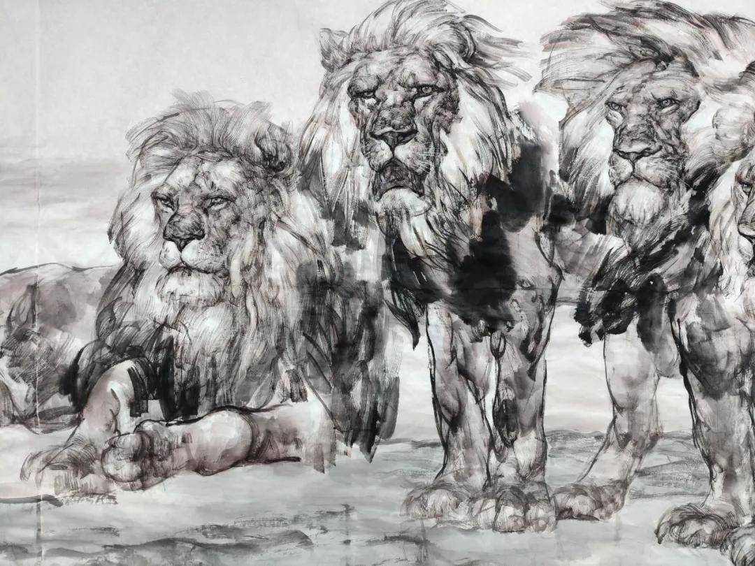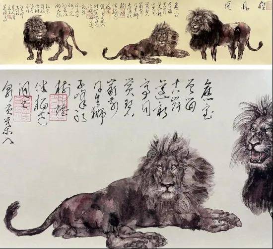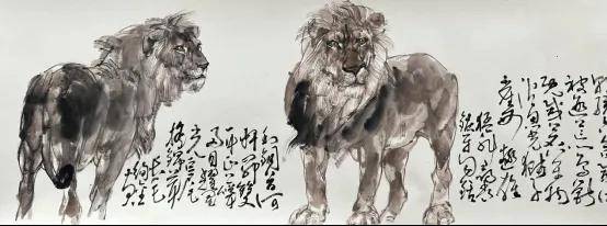 书写之性,使意笔写实之法,不悖于中画之传统,而彰显中画之本质。先生之雄狮图,虽融西法之结构,然通体皆为中画之笔墨,无西画之痕迹,看似有油画之体积感、塑造感,实则皆由笔墨之书写而成,线墨所至,形神兼备,气韵贯通,此乃绘画之民族性也。故先生以笔墨之书写性,破意笔与写实之隔,融中西之法,使绘画之抒情、形式、民族之性毕现,绘画之本,由此而彰,此乃先生雄狮图之卓绝者也。