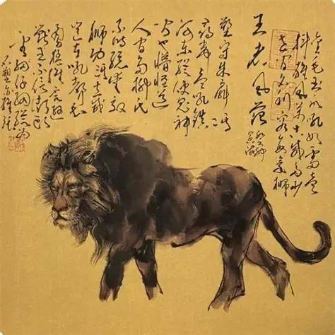 先生之雄狮图,以笔墨为媒,续古今之文脉。中画之脉,肇自三代,盛于汉唐,延于宋元,传于明清,先生承顾、谢之法,融徐、八之意,取悲鸿之变,创自己之体,以书写之性,续笔墨之脉,以意笔写实,开当代之境,使中画之传统,非徒守成,而能创新,非徒复古,而能化新,古今相融,文脉相续,此乃历史之人文也。先生之画,诗、书、画、印四者并举,其题跋,皆自作诗文,合辙押韵,文思隽永,其书法,遒勃老辣,淡泊含蓄,其印章,朱红映墨,相得益彰,诗以言志,书以传神,画以塑形,印以定局,四者相融,成文人画之高境,彰文人之修养,此乃文人之人文也。