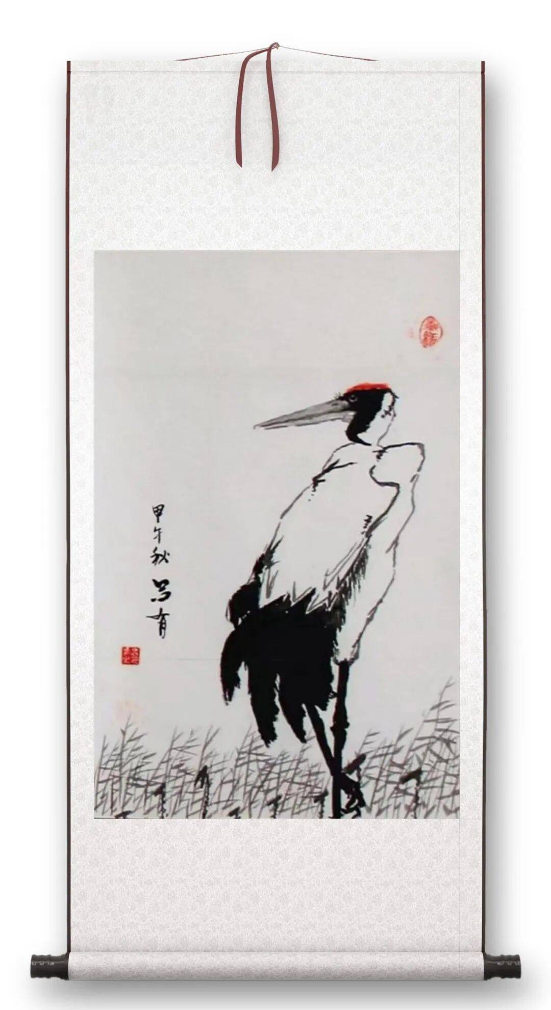 鹤为先生花鸟创作的核心意象,亦是其精神的化身。他绘鹤不刻意雕琢,仅以寥寥数笔点染,丹顶一点醒目,白羽翩跹传神,或振翅欲飞、或静立浅滩,仙姿逸态跃然纸上。笔墨间无俗艳之态,尽显“物我两忘”的空灵与“天人合一”的通透,这鹤是他对自由的向往,更是历经沧桑后对纯粹心境的坚守。