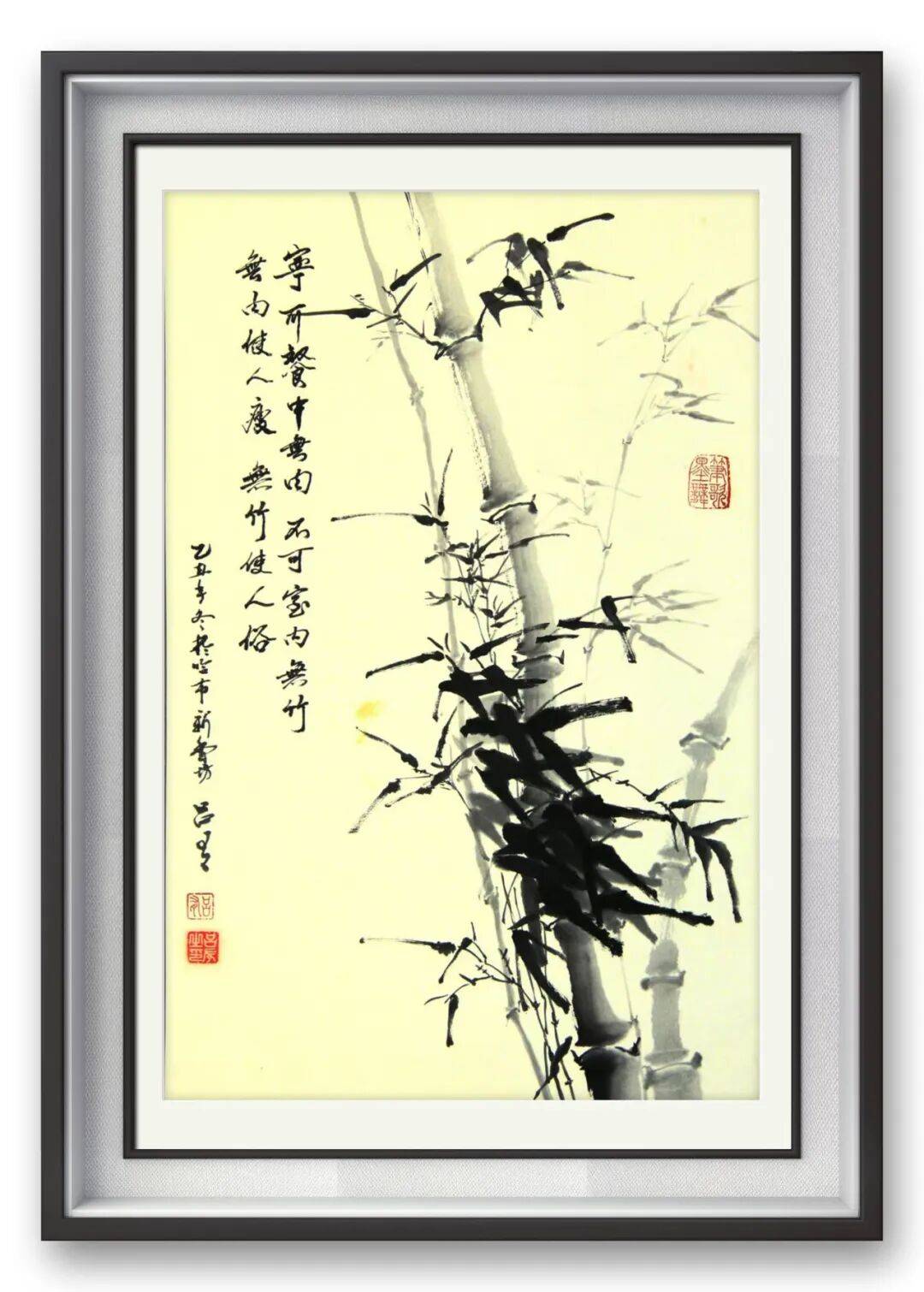 若鹤是精神寄托,竹便是先生人格的写照,为其花鸟创作添注风骨。他笔下之竹,不重形态铺陈,独取内在劲节,寥寥数笔勾勒枝干,笔锋苍劲中藏着不屈韧性。墨色浓淡相生间,修竹疏朗有致、气节凛然,既得文人竹的清瘦孤傲,又添岁月温润。笔端留白见天地,恰如他从机械严谨中走来,以笔墨卸去桎梏,竹之劲节即人之气节。