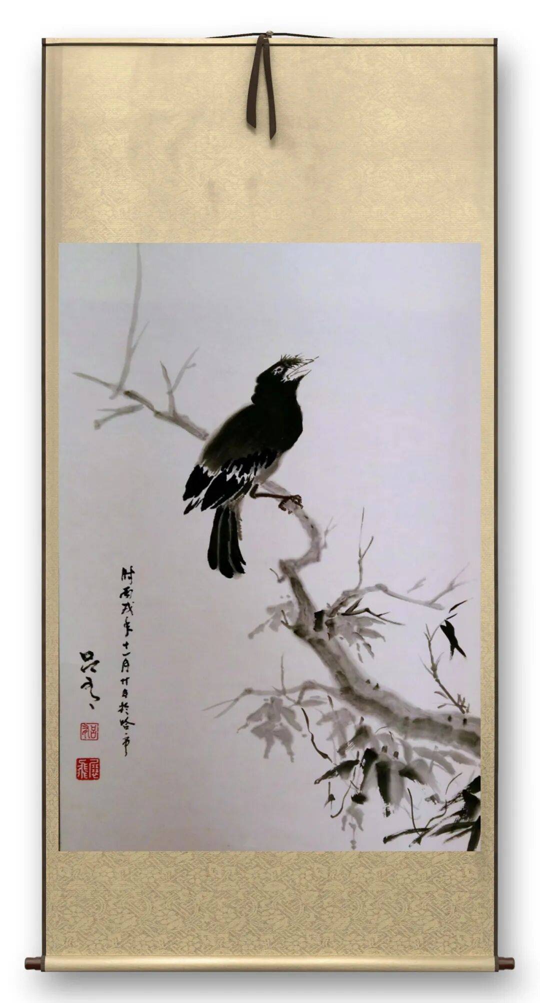 书画相融、笔墨相济,先生的书法功底尽数滋养其花鸟创作。他的花鸟作品不重繁饰、唯求气韵,挣脱了工细描摹的束缚,以写意笔法勾勒情态,墨色层次分明、线条灵动自然。无论是草木的舒展还是禽鸟的情态,都在笔墨间自然流淌,既见传统花鸟的清雅意趣,又融入自身对自然的感悟,自成一派澄明意境。