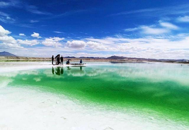 盐湖地处海拔三千余米的高原,因含钾、镁、锂等金属元素和卤化物,盐床或淡青、翠绿或深蓝交替,与湖里盐花辉映调色成碧绿焕彩的画面,所以被称为翡翠湖;也因其色彩斑斓,而被称为“大地调色盘”,还有人亲切地称之为“上帝流下的眼泪”“高原上的天然调色盘”“人间绝美的绿宝石” ,它又被称为“情人湖”,散发着浓浓的浪漫气息。也有人认为这里比“天空之镜”茶卡盐湖更美。