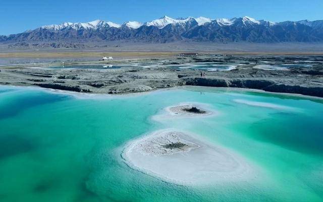 翡翠湖周边是广袤的盐壳地带,其白色与绿色的湖水交相辉映,与周边荒漠景观也形成鲜明对比。并且,因为盐湖水的特有成分降低了“冰点”,这里被称为永不结冰的湖泊,冬季时天空更蓝,此时的湖水如丝绸般柔软清亮,盐湖也更为莹白、清透,与夏季景色大不相同。
