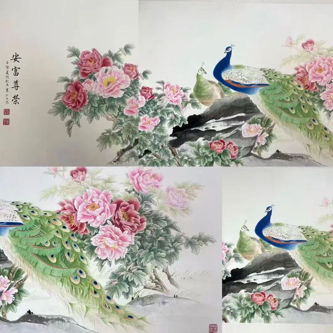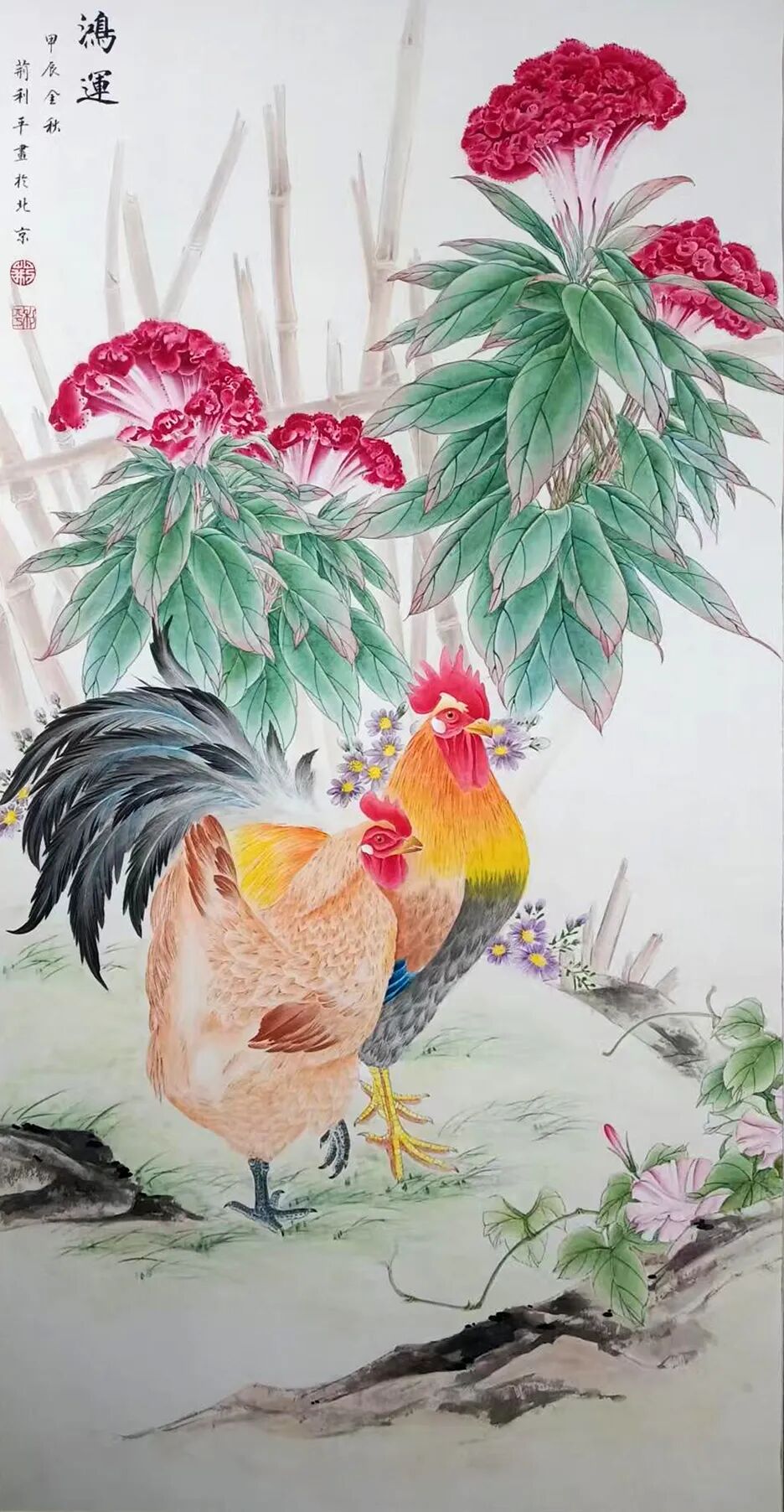 退休后的荆利平,并未停下创作的脚步,反而将更多精力投入工笔艺术的深耕。他摒弃外界纷扰,潜心画室,作品愈发兼具传统韵味与个人风格——他笔下的花鸟,既保留了宋代院体画的精致写实,又融入了现代审美对构图与色彩的创新表达,如《秋韵》中,他以淡墨勾勒枝叶轮廓,用赭石与金黄渲染秋日氛围,让秋菊与禽鸟在画面中相得益彰,尽显秋日的静谧与生机。