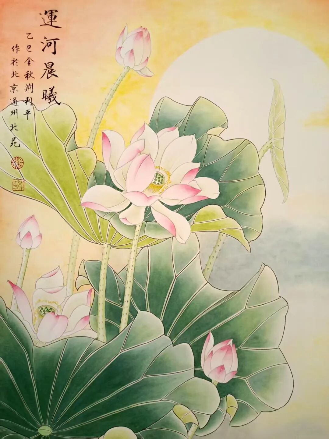 怀着对自然写生的热忱之心,荆利平先生得以深入领略万物花鸟的多彩风姿。一有闲暇,他便执起画笔,驱遣自己记录所见的一切美好。无论是清涟的荷花叶,还是盛放时节的华丽牡丹,亦或是枝头春意正浓的灼灼杏红,在其笔下都是呈现出了一种动人的纯粹、唯美与柔和。不见丝毫的世俗庸浊之气,有的只是对自然之美的细腻表达。妙手成春,花开自然,他寄情于写生,蕴意于笔墨,升华于心源,可以说,荆利平先生已然是真正将诗情与画意融为了一体,使作品别具一番清雅蕴藉的情韵!