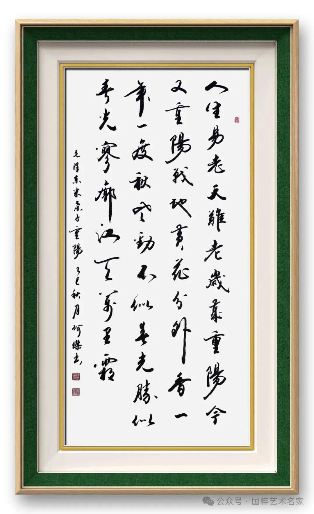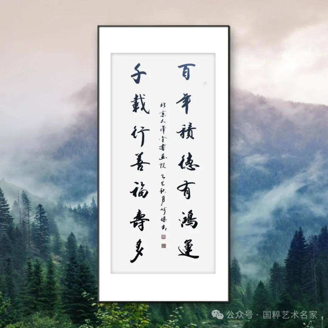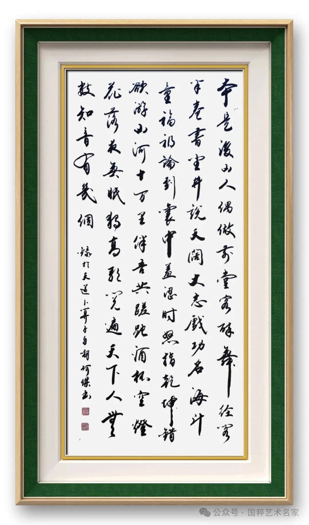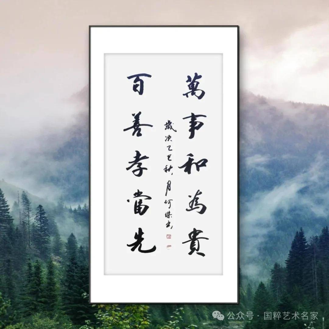 更难能可贵的是,何杰先生将丰富的人生阅历与深厚的文化积淀融入创作,使作品超越了单纯的视觉艺术范畴,成为精神与文化的载体。他的作品中,既有侠之勇的雄浑刚健,又有儒之雅的温婉含蓄,刚柔相济的笔墨背后,是中国传统文化"中庸之道"的深刻体现。同时,他始终以传承民族文化为己任,将对传统文化的热爱与敬畏倾注于每一幅作品之中,其作品不仅展现了书法艺术的独特魅力,更传递了中华优秀传统文化的精神内核。近年来,他的作品多次在重要展览中亮相,荣获2025年将军名家联谊会爱心艺术家金奖等诸多荣誉,这既是对他艺术成就的认可,也是对他文化担当的肯定。