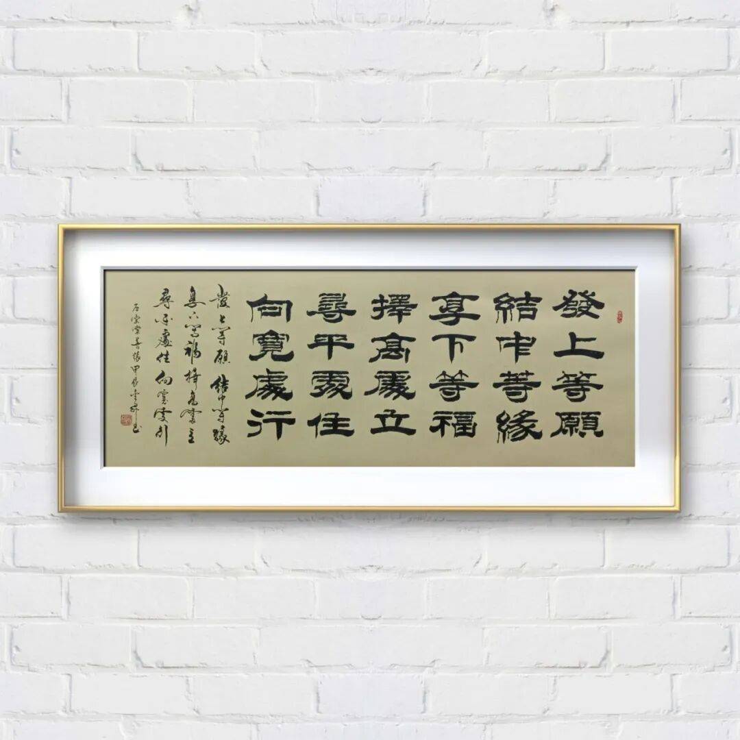 观先生楷书作品,首感其章法严谨、布局匀称。无论是大幅立轴、横幅,还是小幅小品,每一字、每一行都排布得当,疏密有致,首尾呼应,整体气息贯通、浑然一体,无一丝杂乱之感。细品其笔法,更是精到娴熟、一丝不苟——起笔藏露分明,或藏锋蓄力,或露锋点睛;行笔提按顿挫张弛有度,线条圆润饱满却不失筋骨,兼具柔婉与刚劲;收笔利落干脆,或回锋沉稳,或出锋飘逸,每一笔都交代清晰,无拖泥带水之态。其结字更是独具匠心,在遵循楷书法度的基础上,略作调整,让字形端庄中透着灵动,秀丽中蕴含厚重,如谦谦君子,温润如玉却又风骨内敛。无论是经典诗文抄写,还是自作内容创作,先生的楷书都能以笔墨契合文字内涵,让端庄的字体与清雅的文意相得益彰,尽显楷书艺术的正统之美与典雅之气,也难怪能受到各界人士的高度评价。