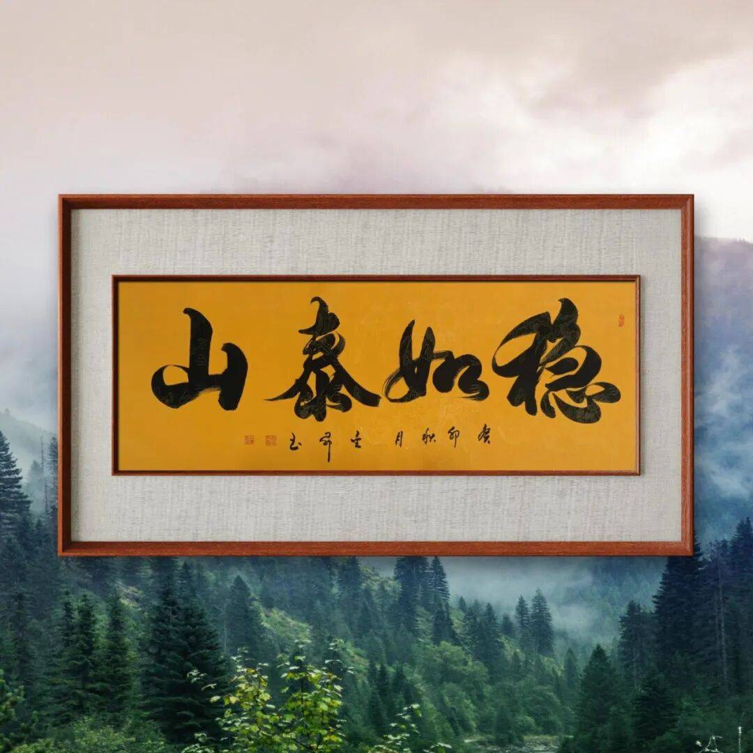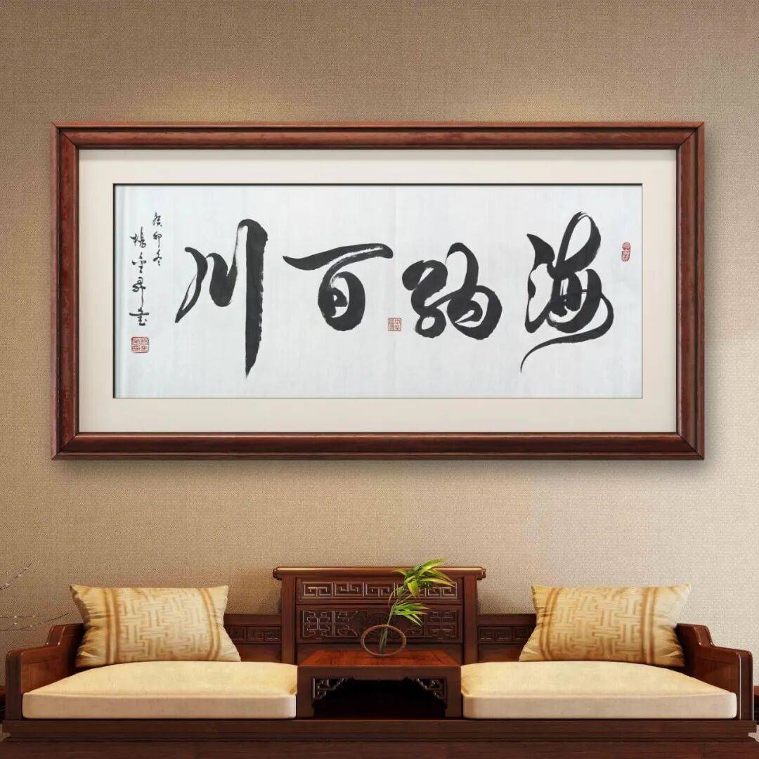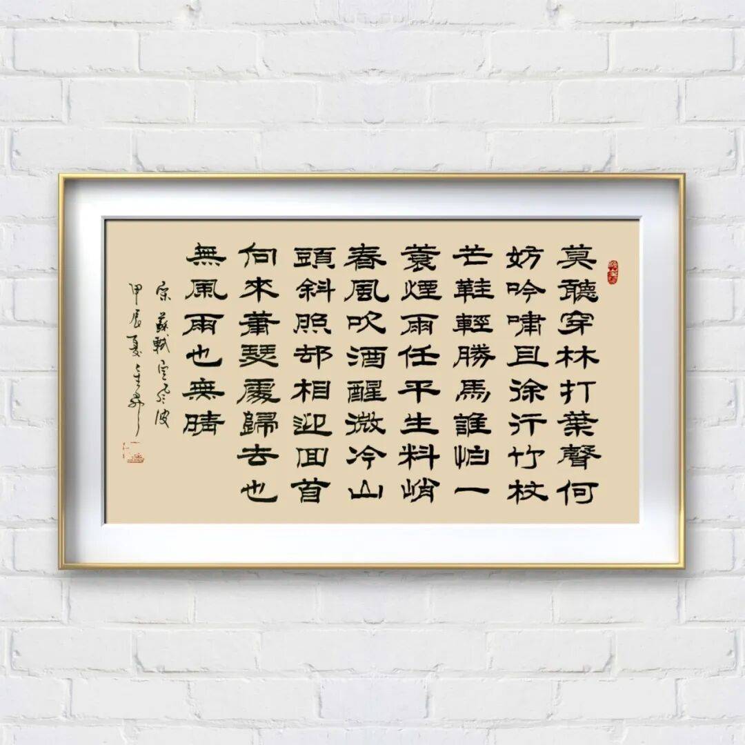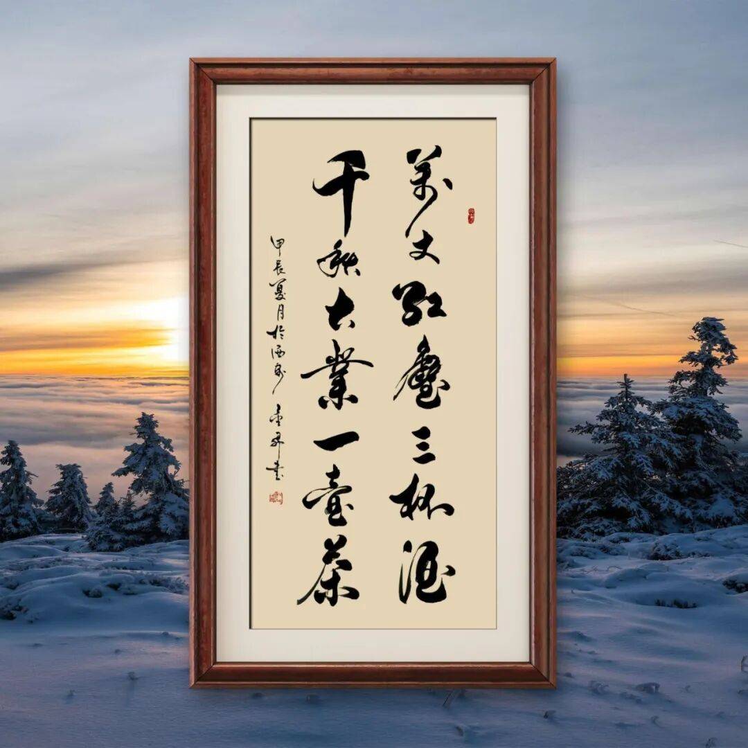 先生的行书作品,无论是书写旷达的诗词,还是质朴的箴言,都能以笔墨传递情感与意境。书写豪迈之句时,笔势开张、墨色浓重,尽显雄浑大气;书写清雅之词时,笔调舒缓、墨色清淡,暗藏温润雅致。这种笔墨与情感的融合,让他的行书摆脱了技法的束缚,多了一份文人的意趣与精神的厚度,读来如行云流水,一气呵成,又余韵悠长,耐人品味。