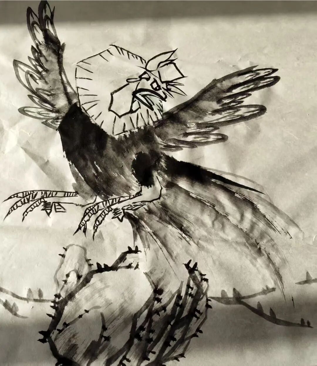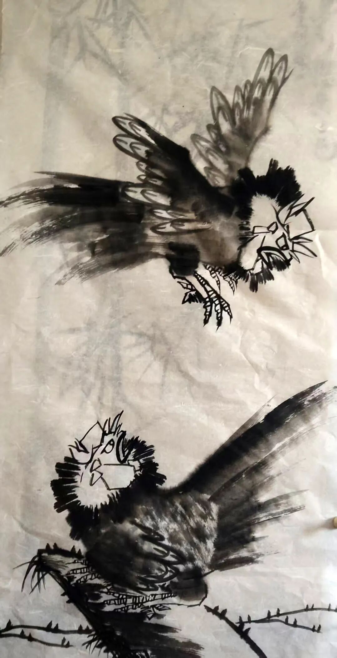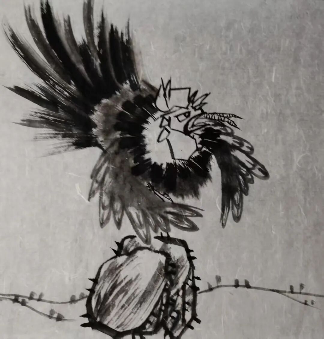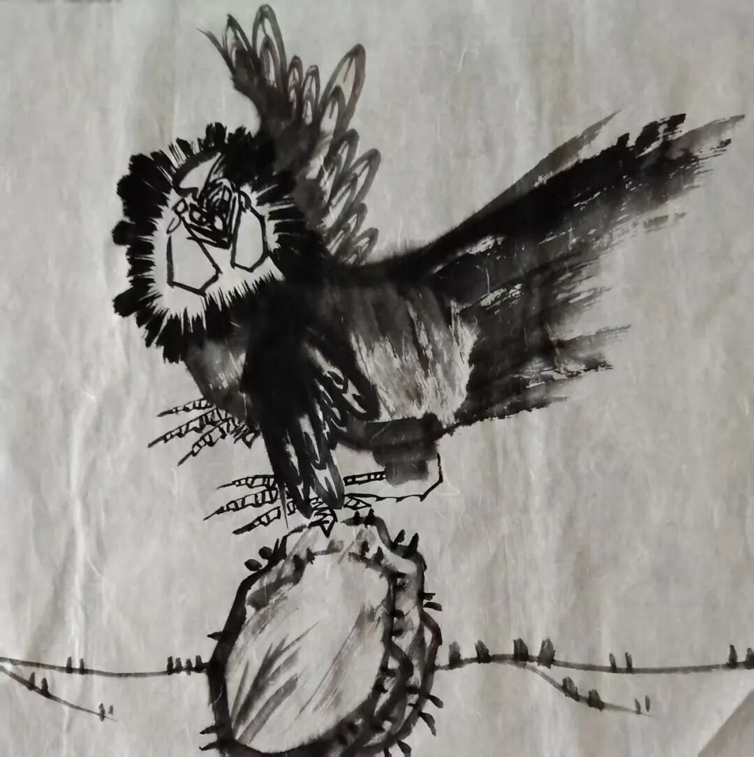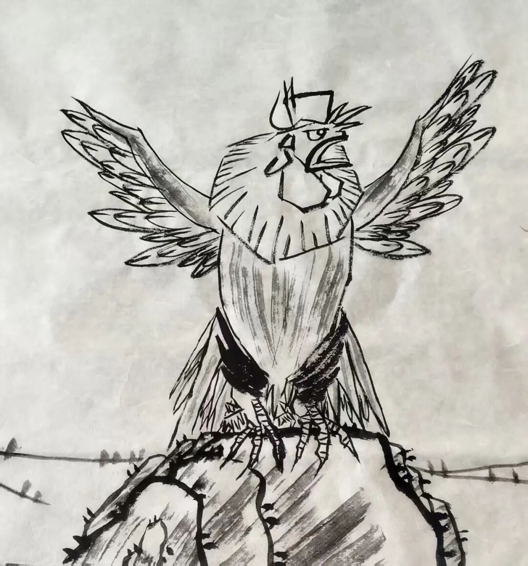 书之于画皆有据,无据者乃为庸书庸画者也。王金朋先生非常注重外师造化,他出去写生风雨无阻,不畏酷暑严寒,他把自己融入到自然当中,闻鸡起舞,与鸡为伴,观察到了雄鸡的千姿百态,,千姿百态的雄鸡在王金朋笔下呼之即出。