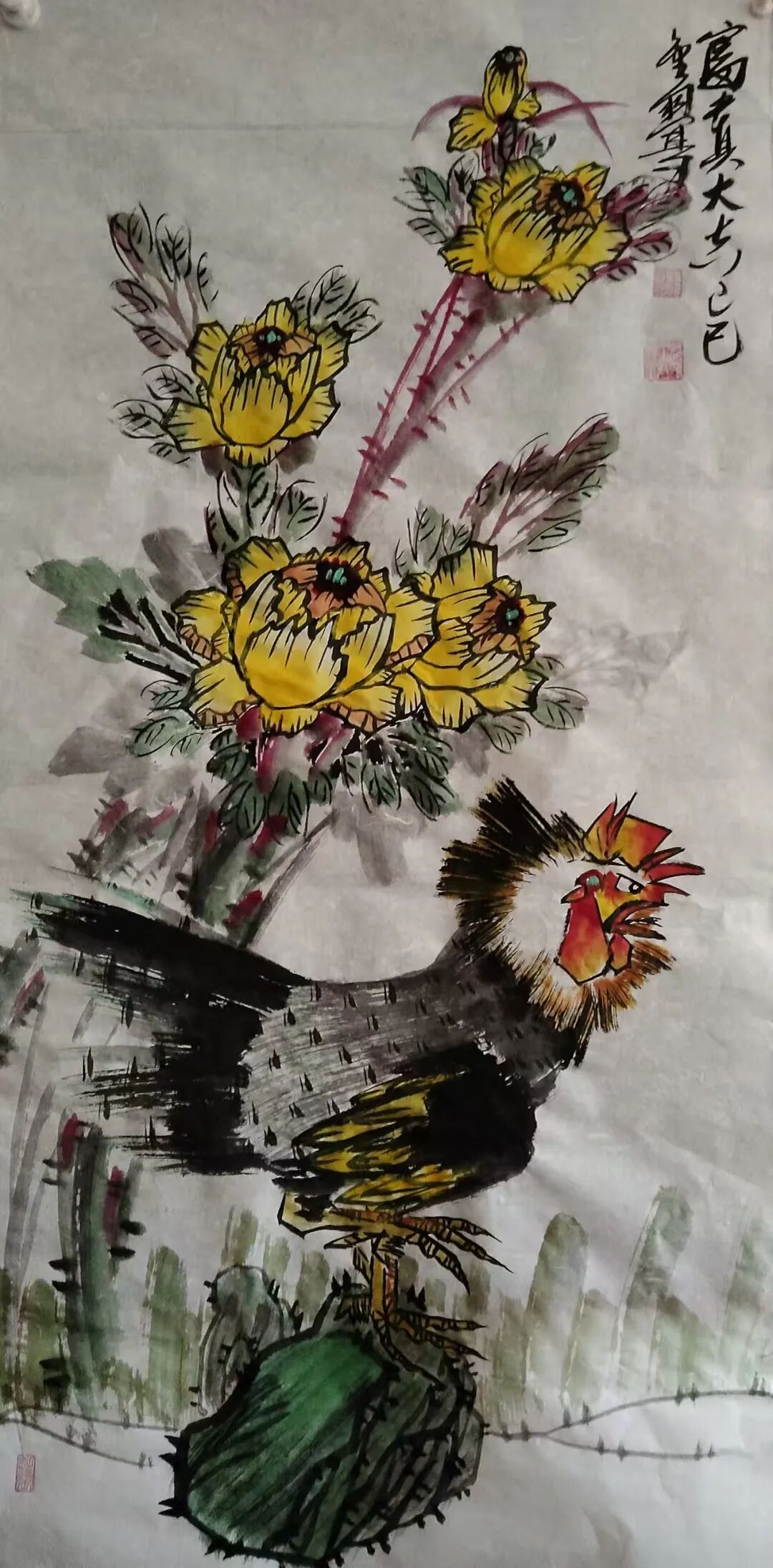 王金朋先生将其画鸡,其书法,其书画论述集于一身,是一个不可多得的艺术天才。