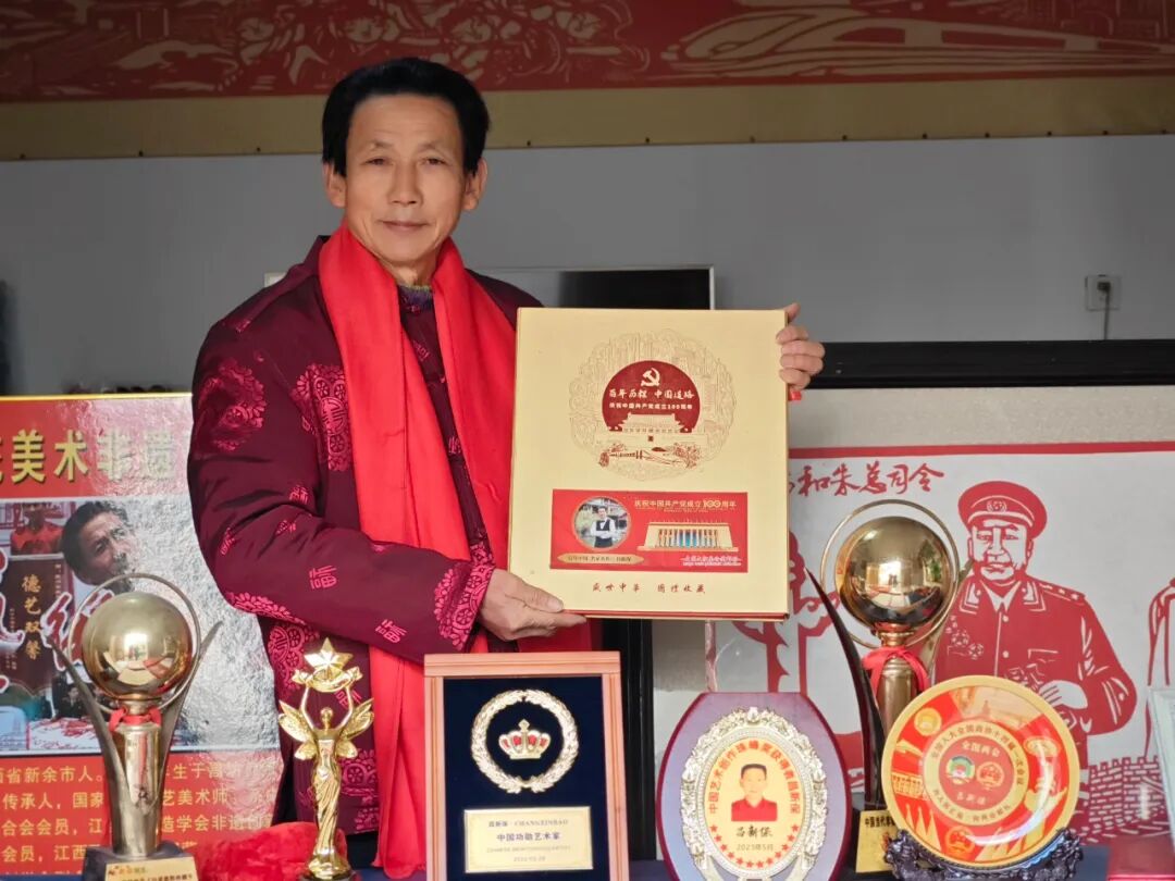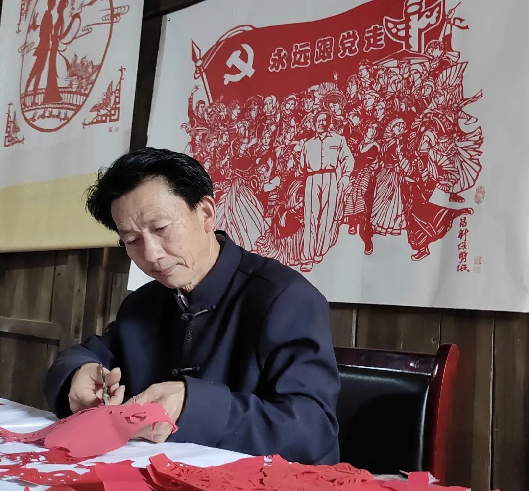 昌新保 江西省新余市人。1954年生于昌坊剪纸世家,中共党员,中国当代非物质文遗产杰岀传承人,国家高级工艺美术师。系中国民间文艺家协会会员,江西省文学艺术界联合会会员,江西省创造学会非遗创新教育专业委员会副主任,江西省工艺美术学会会员,中国剪纸协会会员,新余市剪纸学会会长,2016年江西面孔深藏功与名的江西民间牛人。新时代·中国梦国际赛事组委会副主席。2022年荣获“中国功勋艺术家”荣誉称号,2023年荣获全国两会“中国当代艺术名家”荣誉称号,2023年6月11日荣获“中国艺术创作珠峰奖”,2024年荣获全国两会“奋进新征程·艺术新时代”人民艺术家荣誉称号,2025年4月荣获江西省“百姓学习之星”荣誉称号。他从小受祖传剪纸的影响,逐渐将绘画与剪纸艺术融合一体,练就了一手惊人剪纸绝活。被省、市、区、学院及中小学、老年大学聘为非遗进校剪纸艺术辅导老师,现传承剪纸学生9800多人。